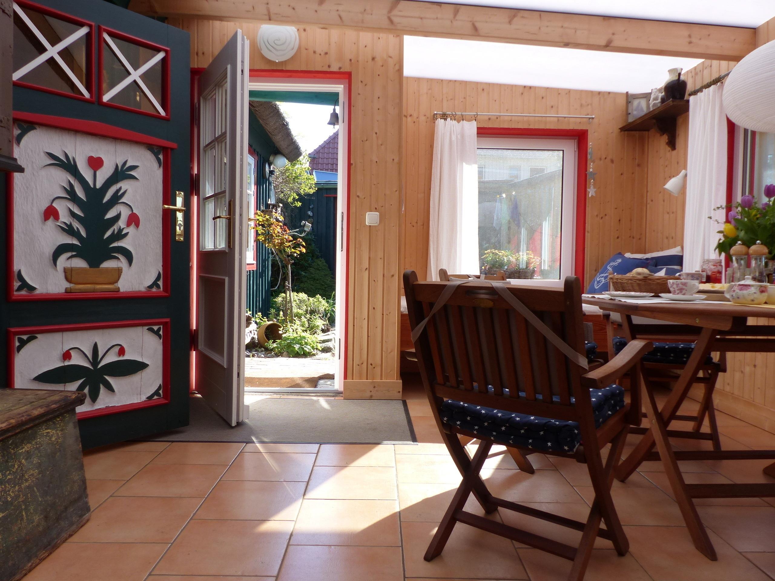 Ihr Ferienhaus im Krabbenort des Ostseebades Prerow befindet sich direkt am Hafen hinter dem Deich und bietet Platz für 4 Personen plus Baby. Die ganztags sonnig und besonders ruhig gelegene Ferienwohnung - separate Haushälfte eines 300 Jahre alten Bauernhauses mit traditioneller Reetdachdeckung - bietet ihnen idyllische Ferien im ortstypischen Stil. Das Ferienhaus überstand als eines der wenigen damaligen Bauernhäuser die dramatischen Ereignisse der letzten großen Sturmflut an der Ostsee von 1872.