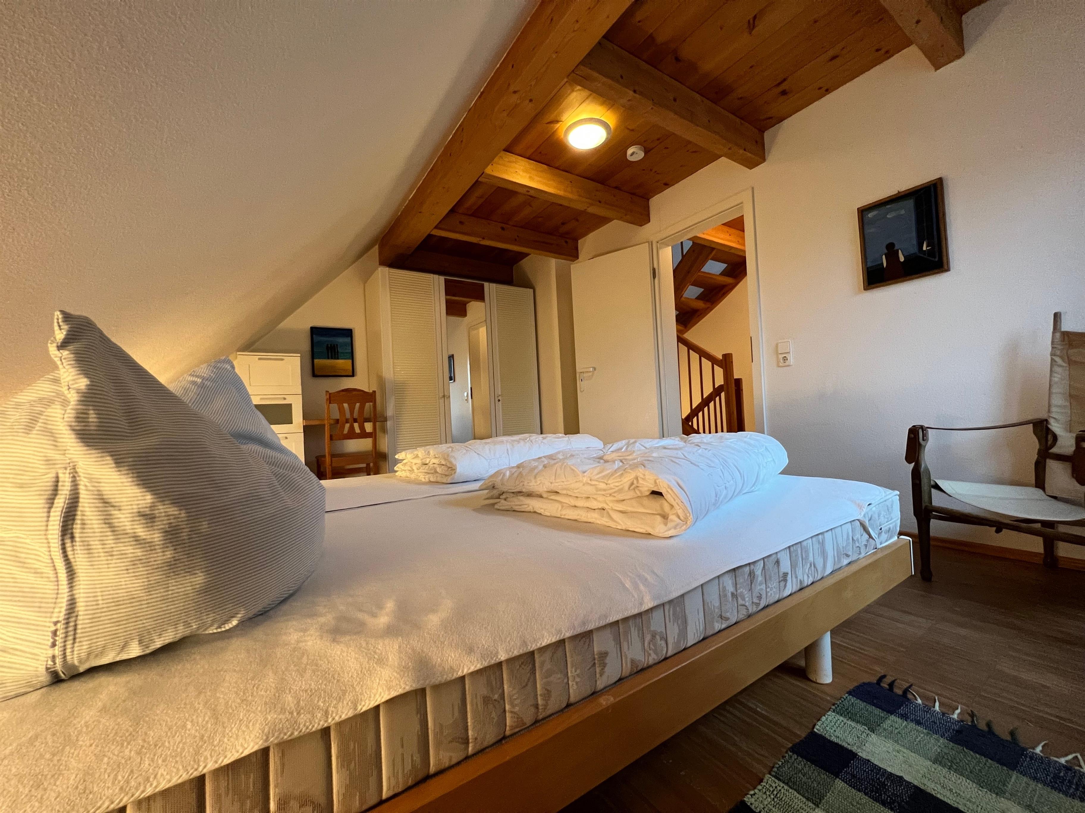 Wohnküche m. Esspl., Wohnzi. 2 Schlafz., Schlafgalerie, Baby-Reisebett u. Sitz