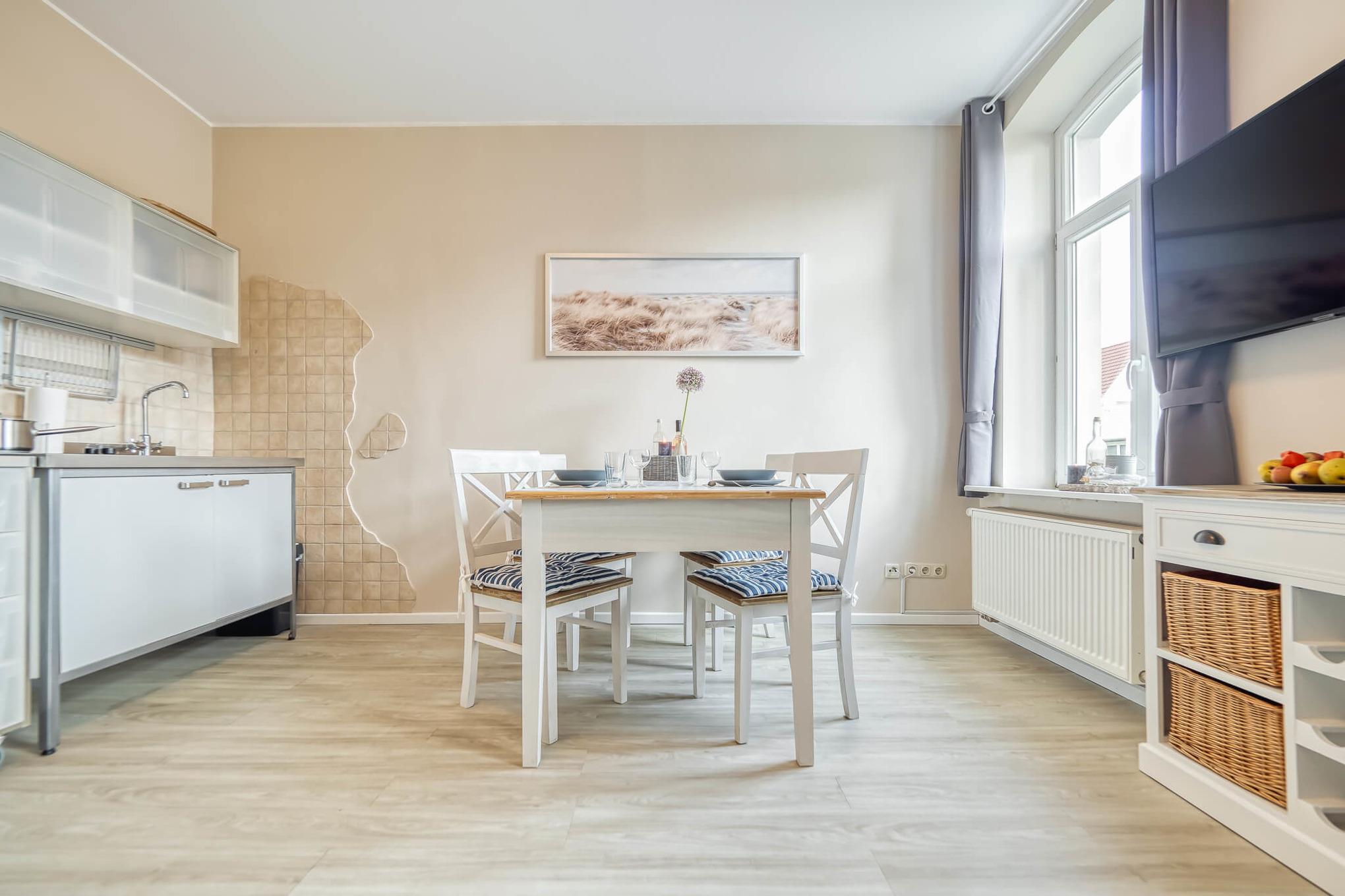 Moderne Ferienwohnung im Erdgeschoss der Villa Mare in Prerow, nur 10-15 Minuten vom Strand entfernt.