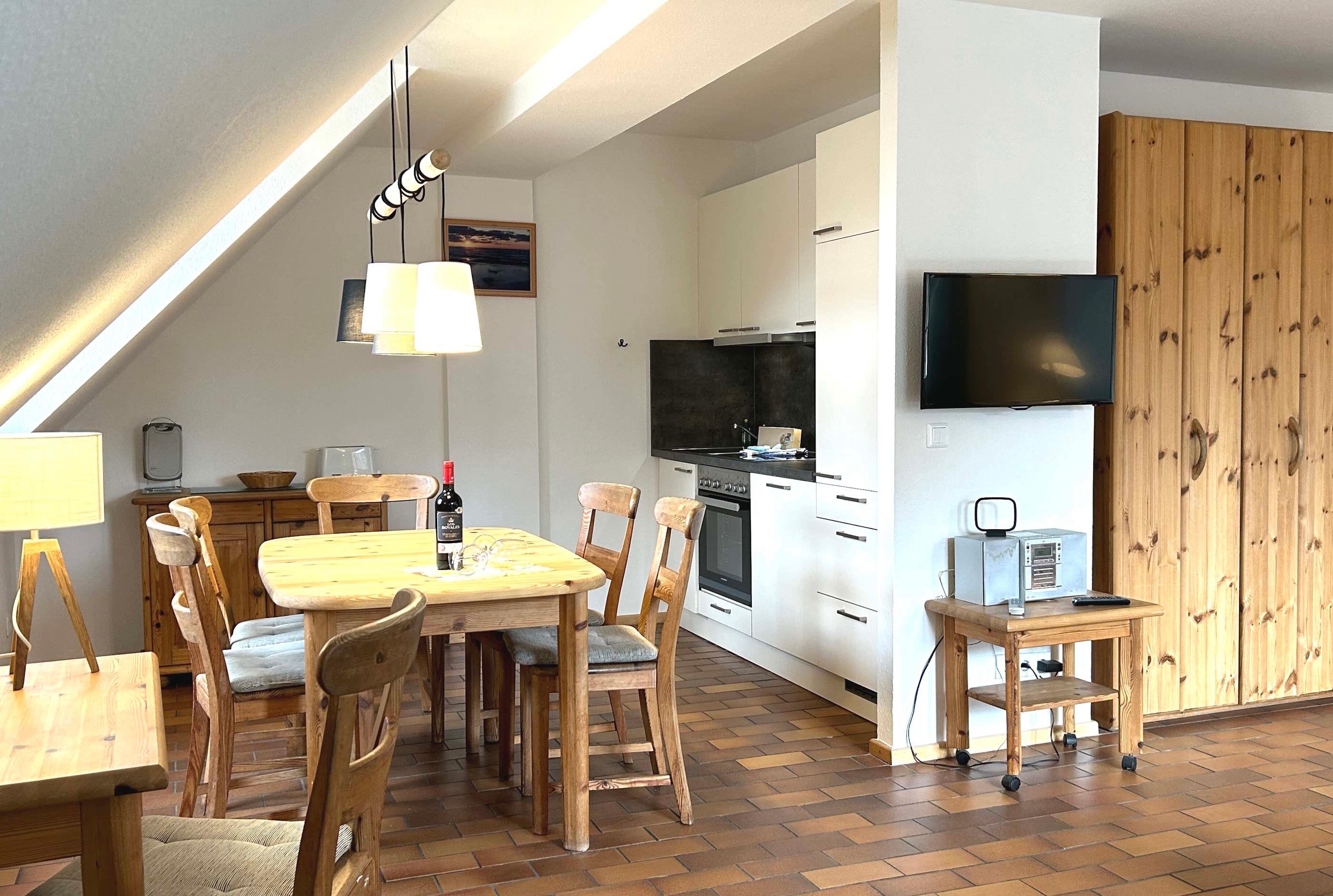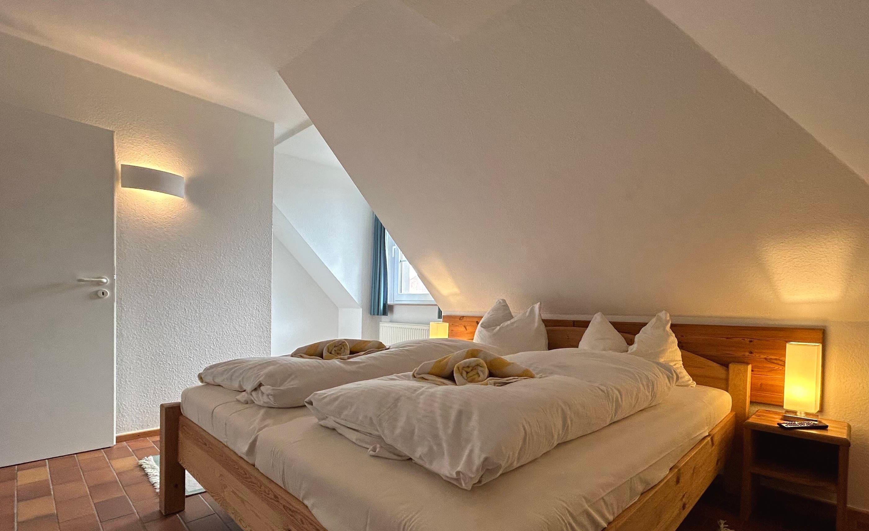 Die Ferienwohnungen bestehen aus zwei Zimmern mit 54 qm für zwei bis vier Personen oder drei Zimmer-Maisonette mit 75 qm für zwei bis sechs Personen und sind voll möbliert.
