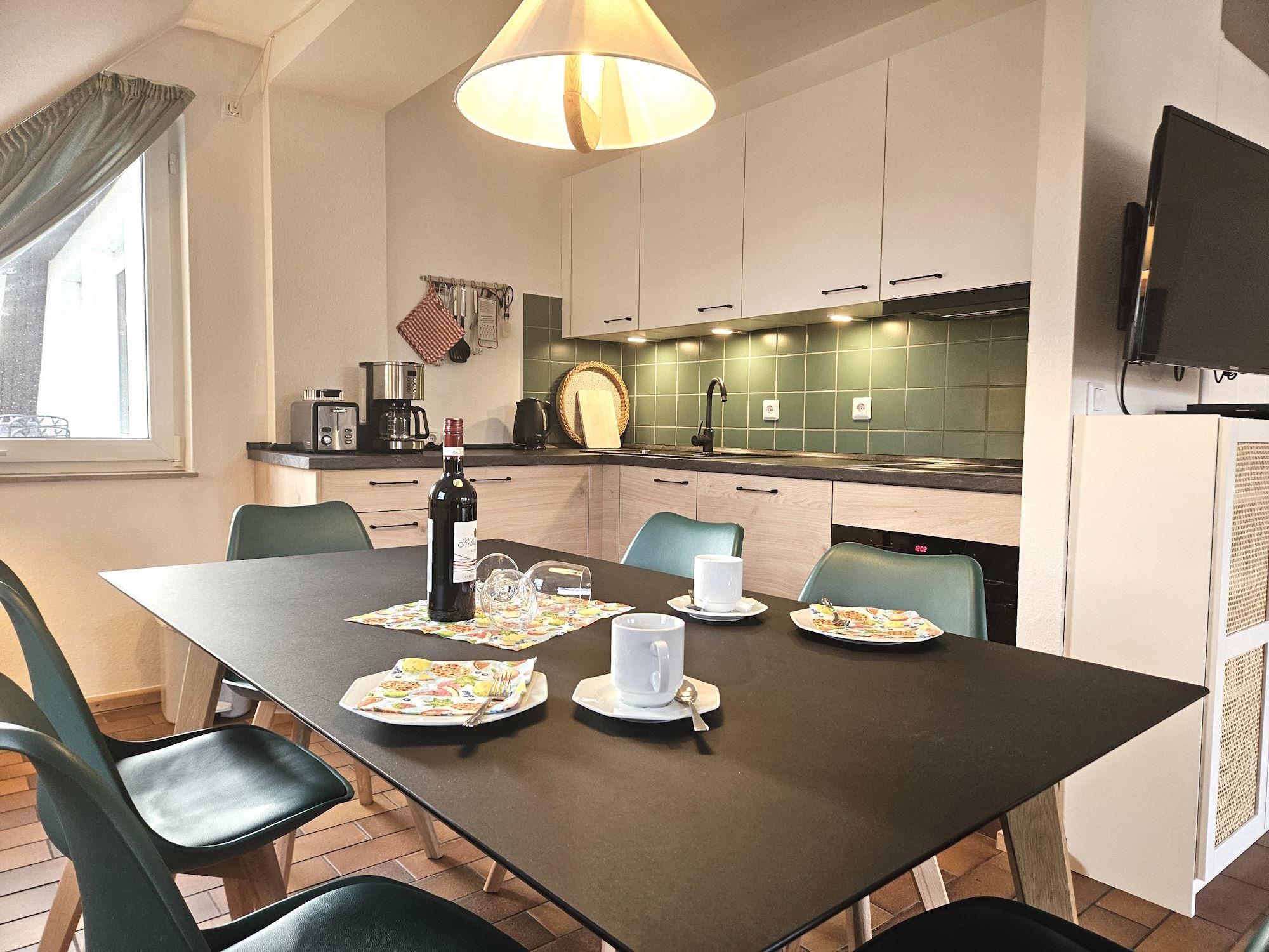 WLAN über ein gesichertes Netzwerk können Sie in allen Wohnungen empfangen. Zu unserem Service gehören bezogene Betten und Handtücher.