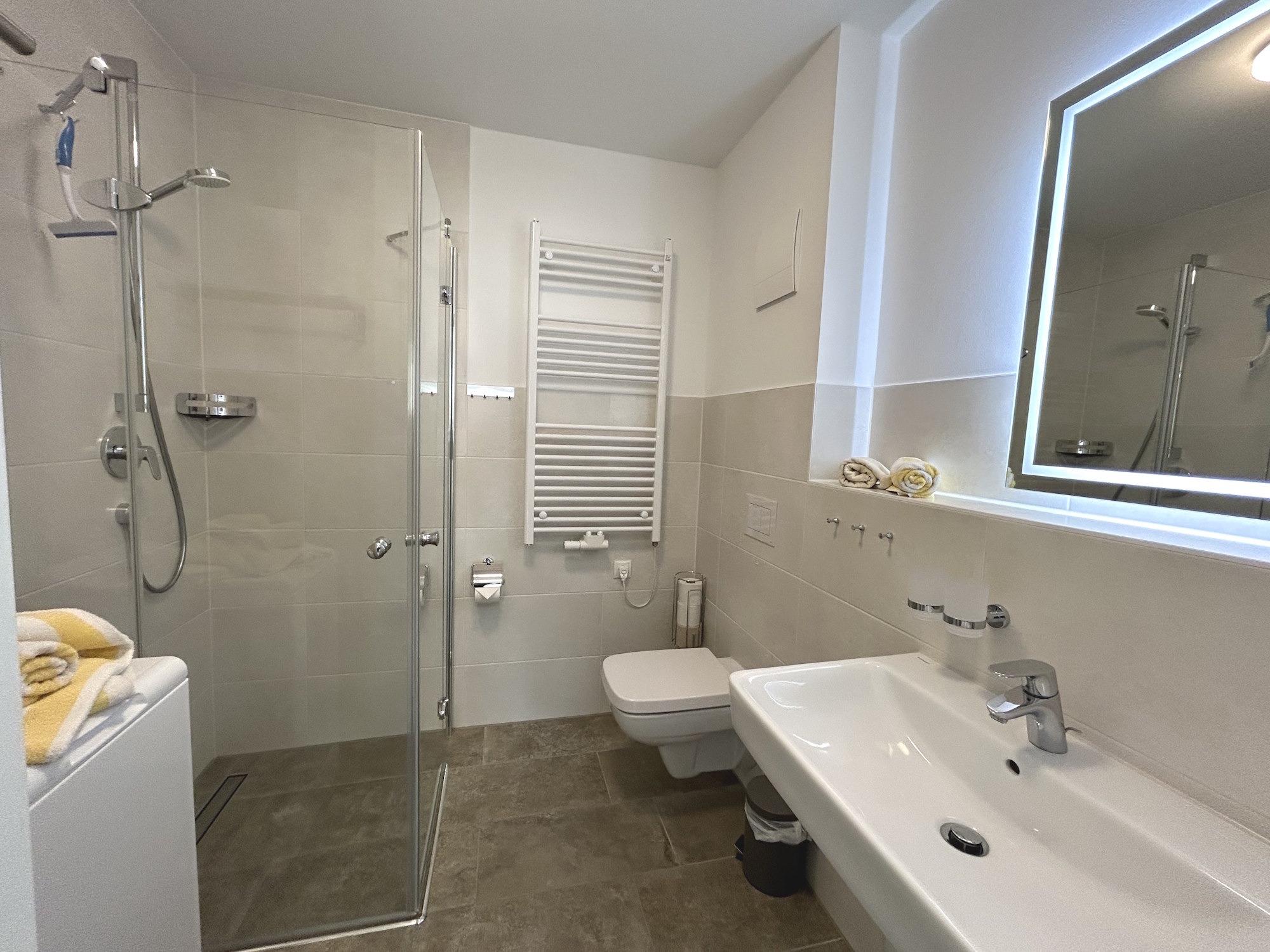 Neue, moderne 3-Zimmer-Ferienwohnung für 2-4 Personen im Erdgeschoss. Ostseebad Prerow, Waldstraße 64. Direkt am Darßwald, ca. 800 m zum Nordstrand, 5 min zum Zentrum, ruhig gelegen. 68 qm im Erdgeschoss. Terrasse und Garten, abschließbarer Fahrradraum, 2 Parkplätze. Modern und hochwertig eingerichtet, großzügiges Wohnzimmer mit großer Couch, Sessel, TV, Stereoanlage, Kamin, Esstisch, voll ausgestattete, Küchenzeile mit Spülmaschine, Backofen, Ceranfeld. Duschbad/WC und Gäste-WC. Waschmaschine.