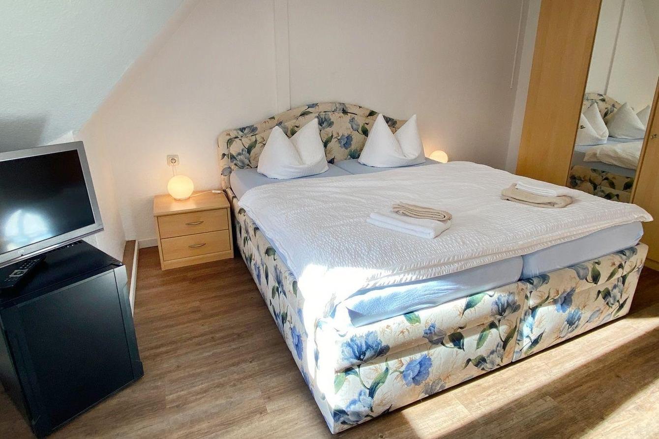 Gemütlich eingerichtetes Doppelbettzimmer mit Dusche, WC, Fernseher. Selbstverständlich gehören Bettwäsche und Handtücher zur Ausstattung. Im Preis für die Zimmer ist ein reichhaltiges Frühstück vom Buffet enthalten. Unser Haus ist rauchfrei! Das Zimmer 2