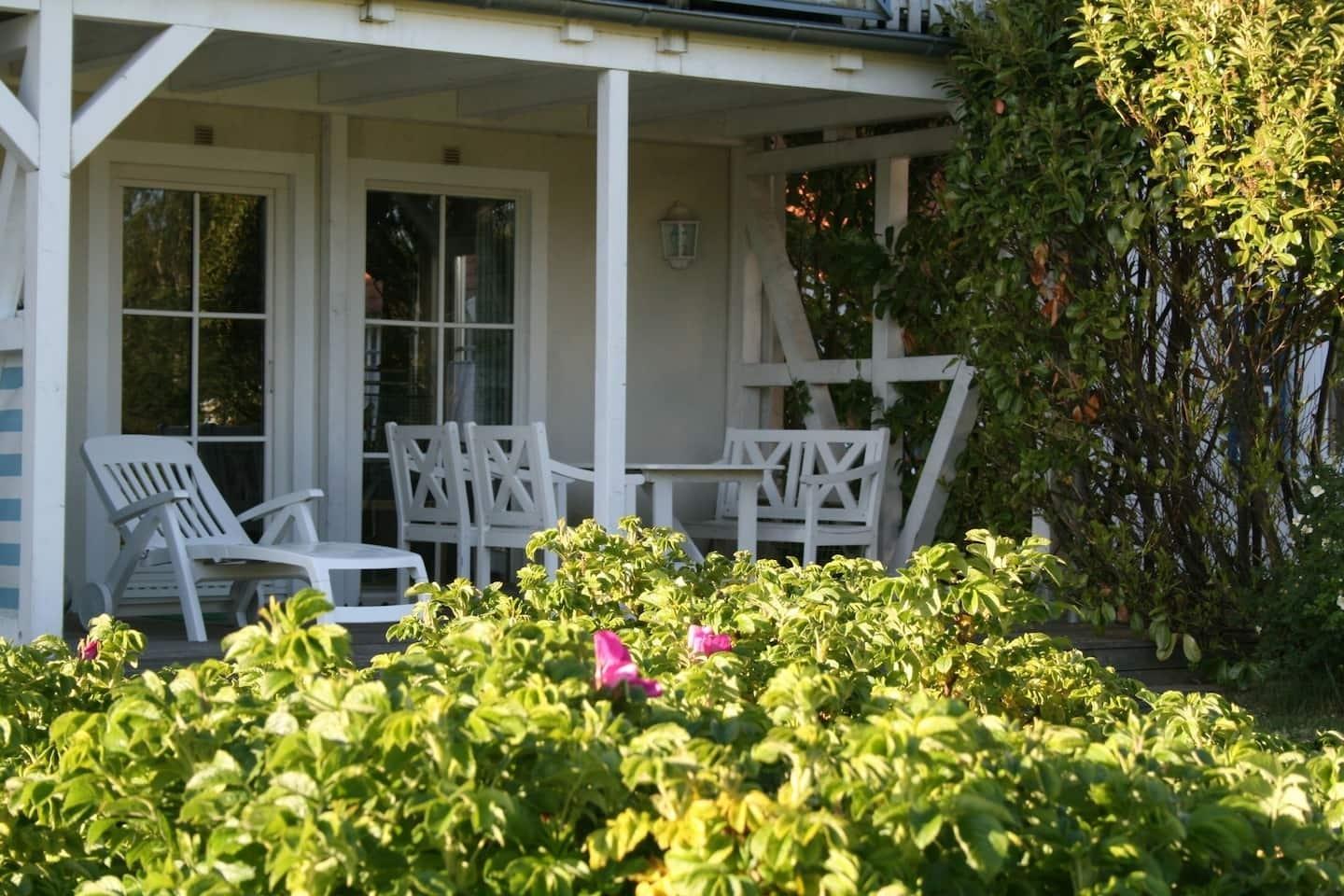 Willkommen in der Ferienwohnung "In den Wiesen App. 3" in Prerow! Diese charmante Gartenwohnung bietet auf 63 m² Platz für bis zu 4 Personen und verbindet modernen Komfort mit naturnahem Ambiente.
