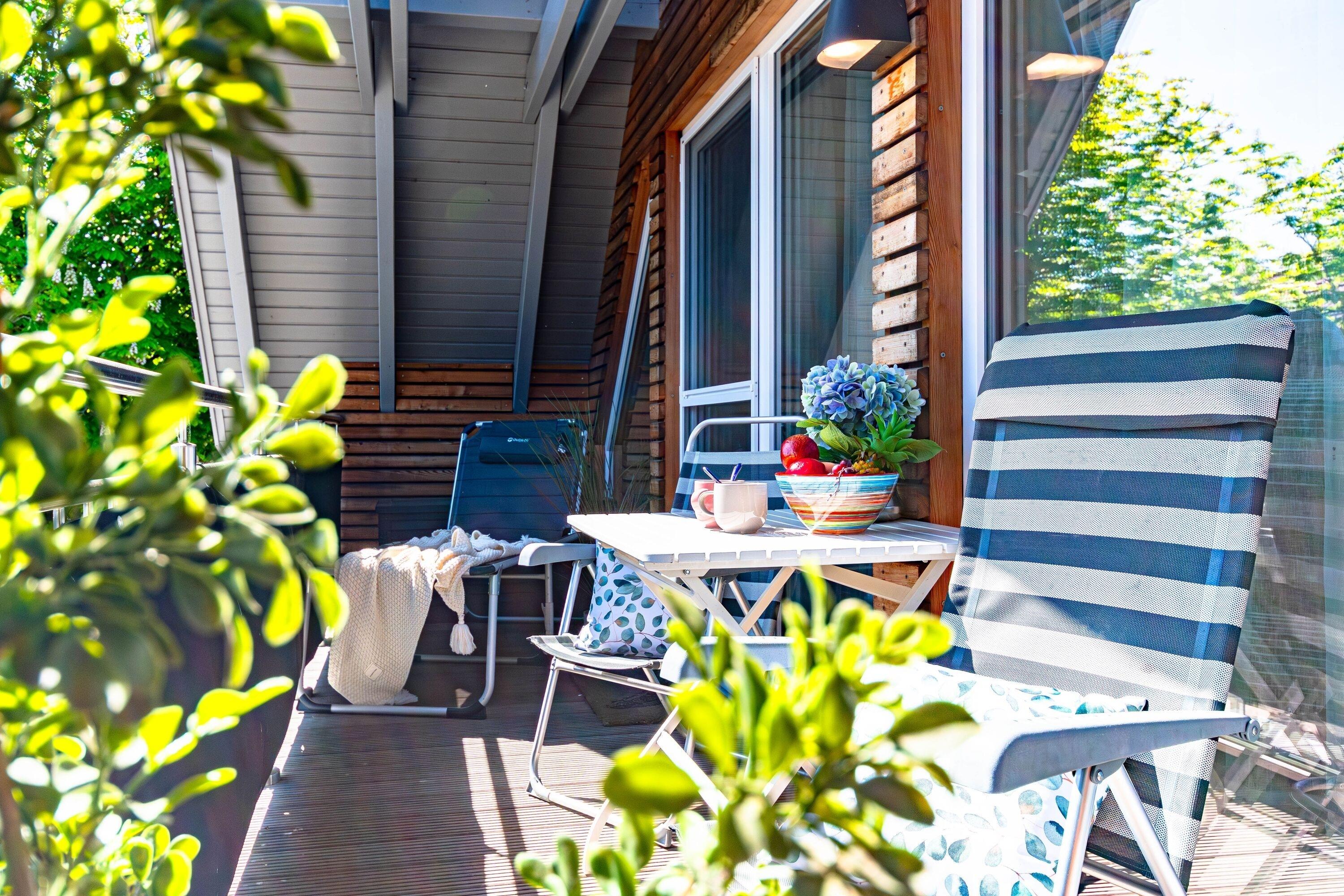 Die Ferienwohnung "Sterntaucher, Whg. 06" empfängt Sie mit einer harmonischen Kombination aus modernem Komfort und maritimem Ambiente. Der helle Wohnbereich mit Kaminofen lädt zu entspannten Stunden ein, während die voll ausgestattete Küche keine Wünsche offenlässt. Genießen Sie Ihre Mahlzeiten auf der überdachten Loggia oder dem Balkon mit Loungemöbeln. Das moderne Badezimmer und das gemütliche Schlafzimmer bieten zusätzlichen Komfort für erholsame Nächte.