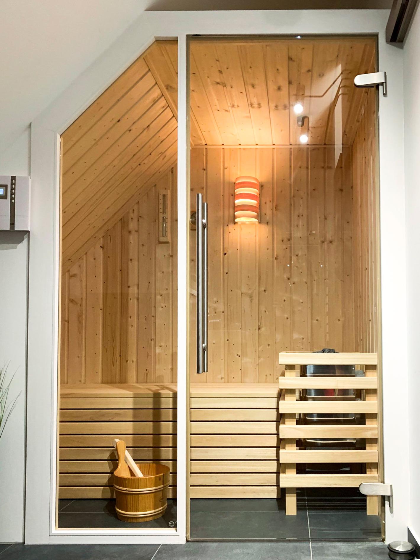 Badezimmer: Zwei moderne Bäder mit ebenerdigen Duschen, Handtuchheizung und Fußbodenheizung; zusätzlich eigene Sauna/Infrarot für Wellnessmomente