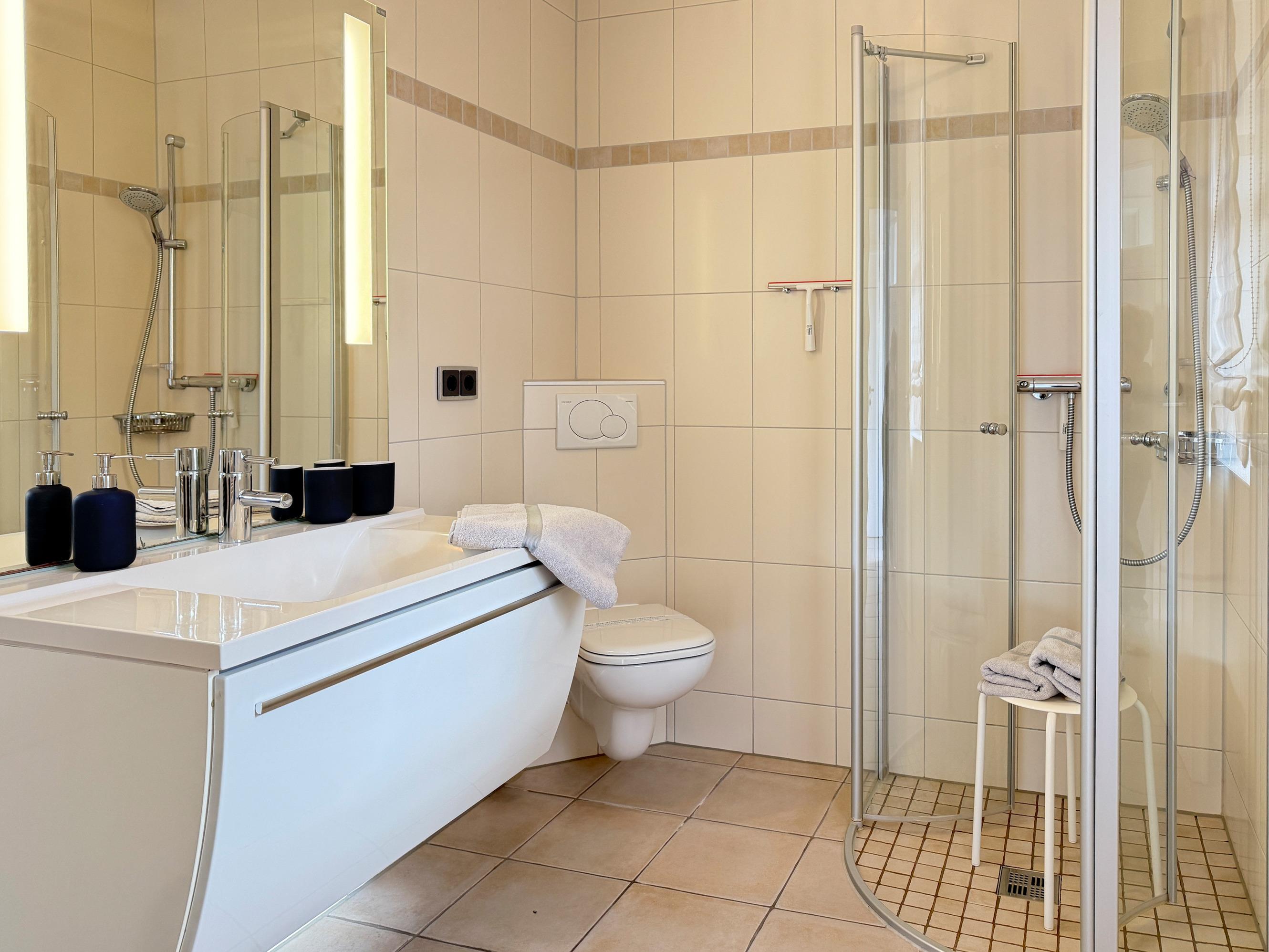 Badezimmer 1: Dusche/WC mit Fußbodenheizung und Haartrockner