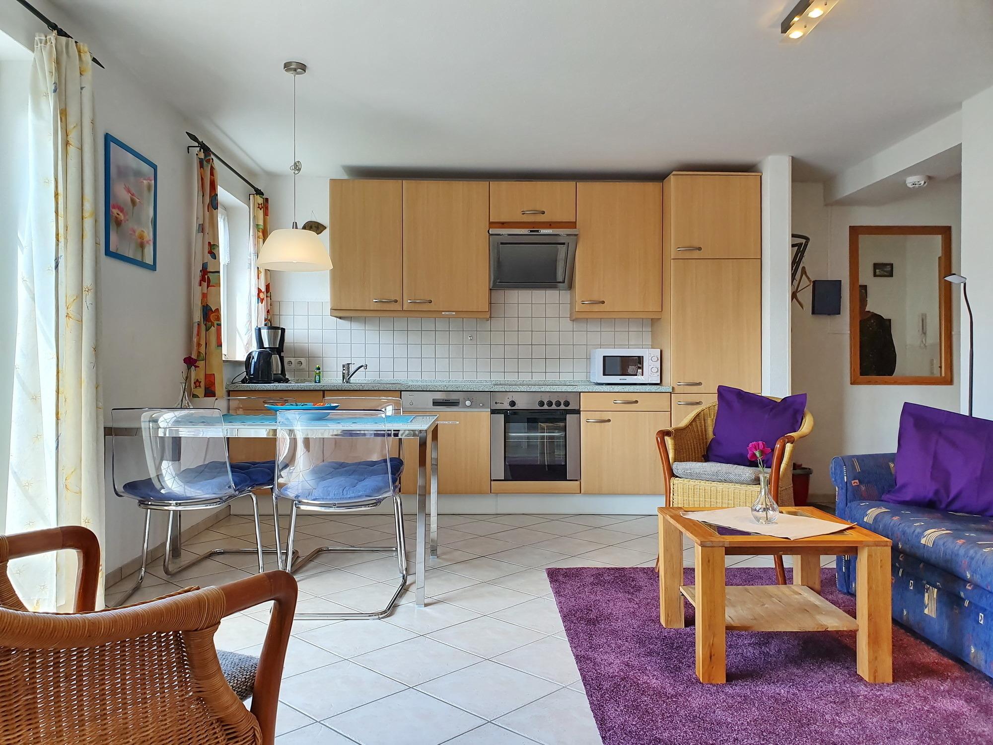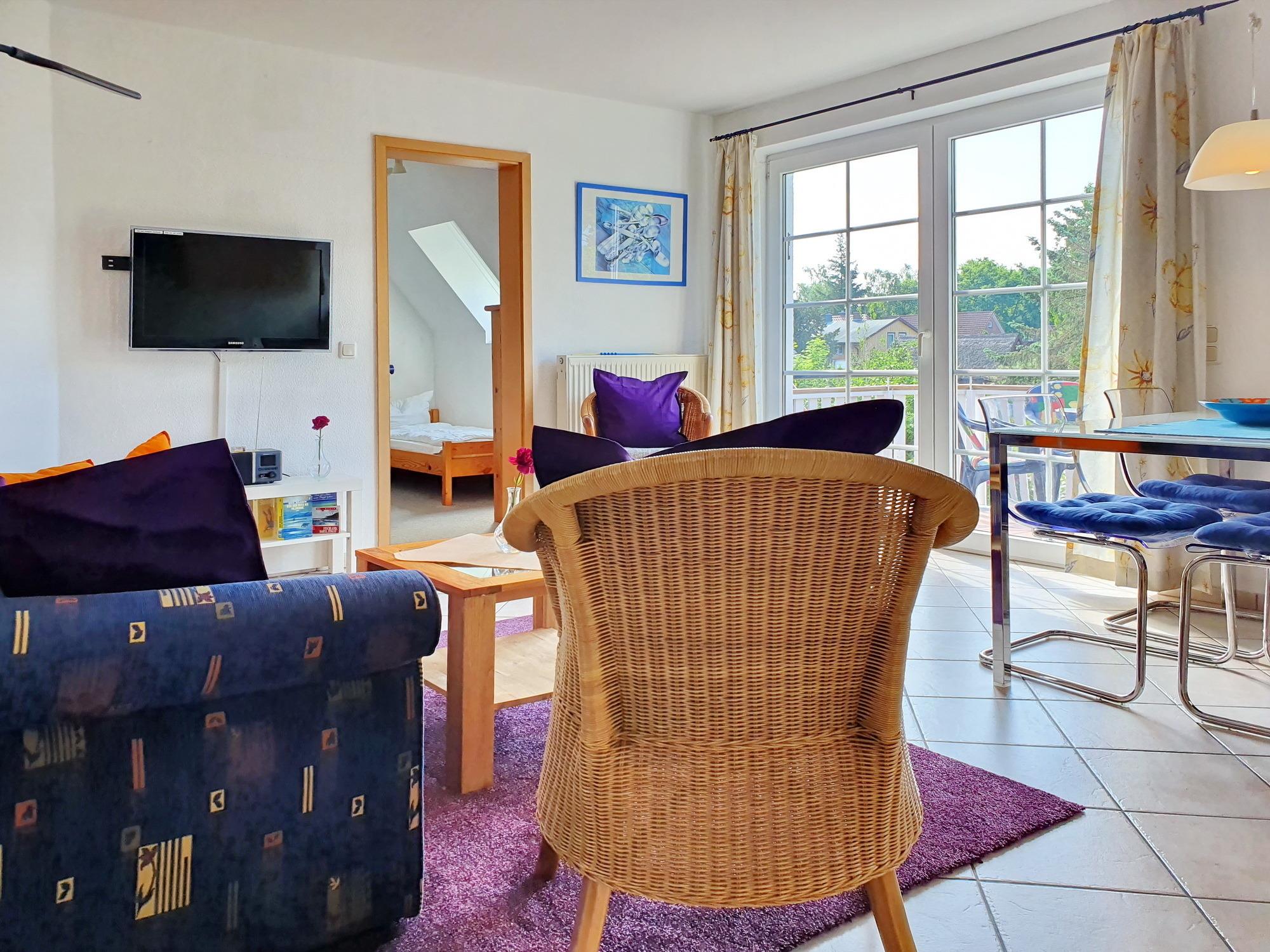 Komfortable Ferienwohnung in Prerow mit zwei Balkonen, gut ausgestatteter Küche und WLAN für bis zu vier Gäste.
