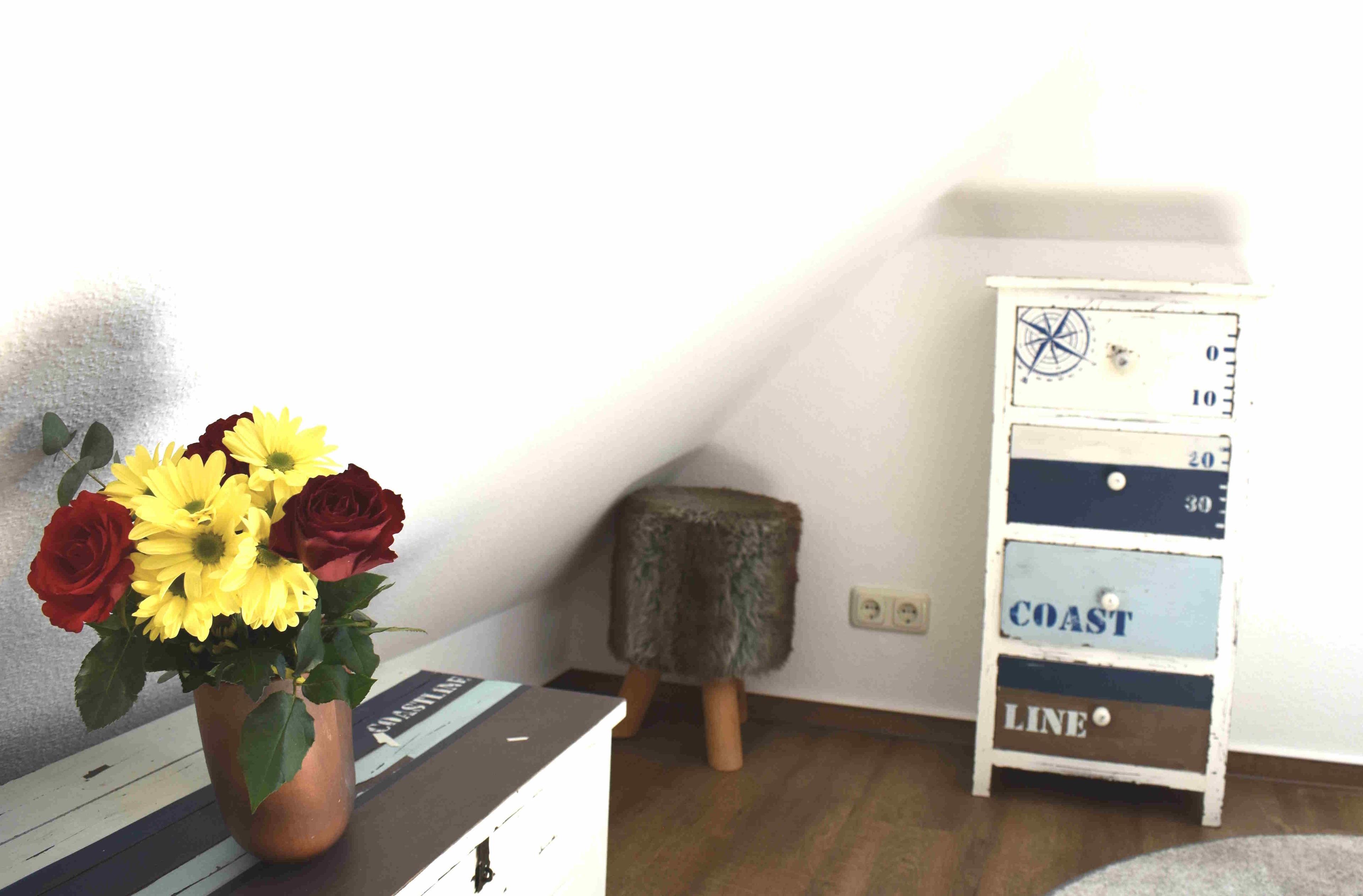 Zum Nordstrand laufen Sie ca. 7 Minuten und in 2 Minuten sind Sie im Darßwald. Das Haus ist modern eingerichtet, hat eine moderne Küche, 3 Schlafzimmer und 2 Bäder (eines mit Sauna), im Wohnzimmer einen Kamin, eine Süd-Terrasse, die in den gemeinschaftlichen Garten mündet. Dort befinden sich ein paar Spielgeräte und ein Grillplatz. Ein Parkplatz ist ebenfalls am Haus.