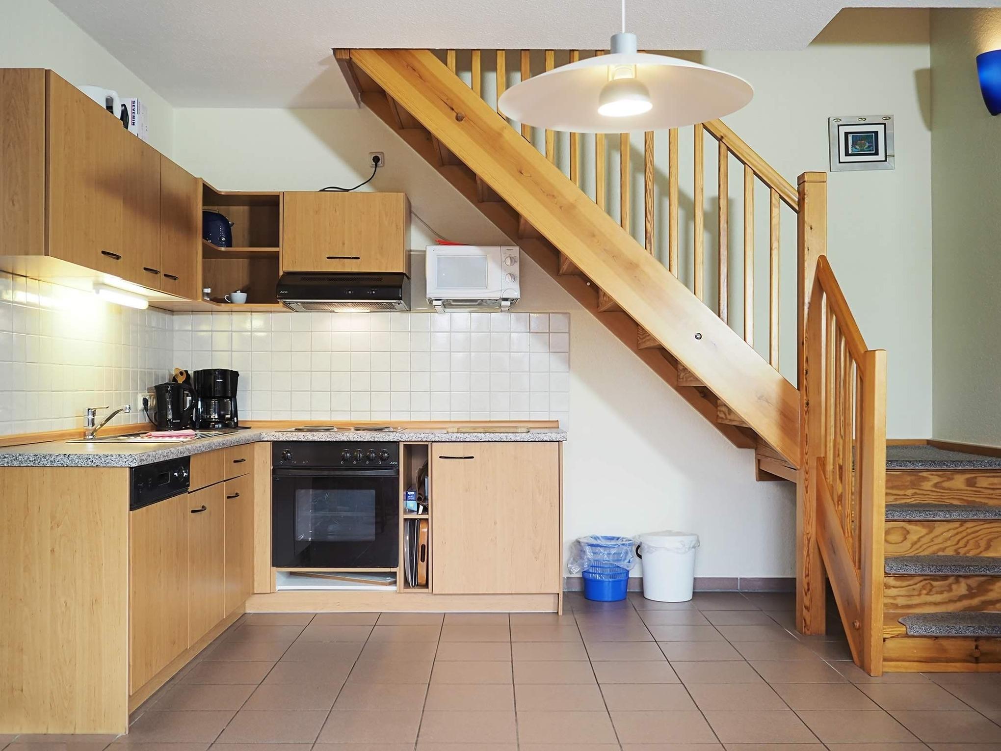 Doppelhaushälfte in schöner Ferienwohnanlage mit Terrasse für 4 Personen (+ 1 Aufbettung) in ruhiger und zentrale Lage im Ostseebad Prerow | Erdgeschoss-/Obergeschoss mit ca. 72 m2 Wohnfläche | Großzügiger Wohnraum mit Küchenzeile, Couchgarnitur, Esstisch, Radio, SAT-TV (Flachbild TV). Süd-West-Terrasse mit Terrassenmöbeln | 2 Schlafzimmer im OG mit 1 Doppelbett/2 Einzelbetten, 1 Klappbett. Duschbad/WC im EG mit Fenster | Inkl. Fahrradstellplätzen, Kinderhochstuhl, Babybett, Parkplatz für 1 Pkw vor dem Haus, Waschmaschine.