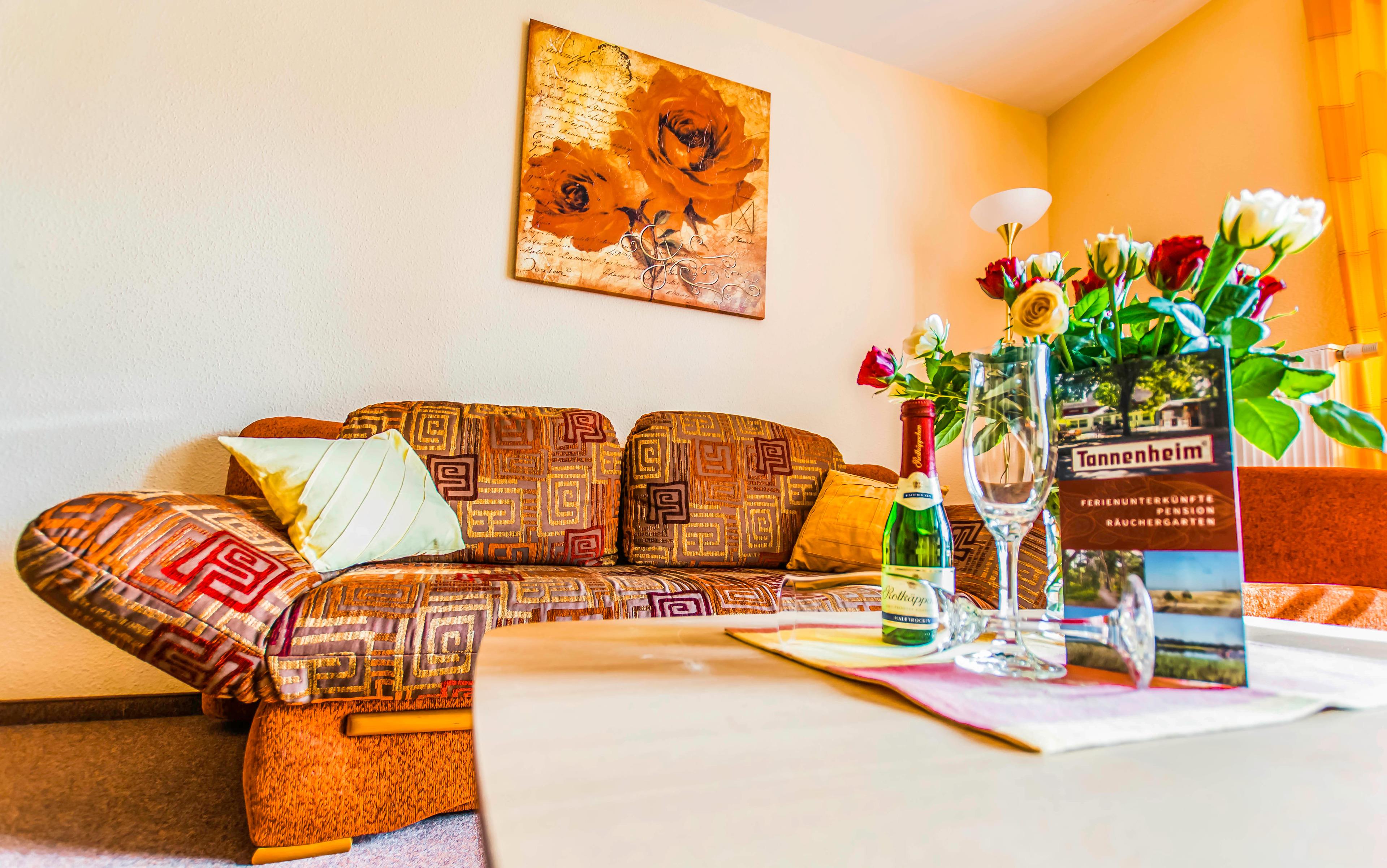 Die Ferienwohnung GH - W4 (für 2 Personen, Aufbettung möglich) befindet sich in ruhiger und zentraler Lage im Osteebad Prerow (Erdgeschosswohnung mit ca. 50 m2 Wohnfläche ). Wohnraum mit Bettcouch, Sitzgarnitur, TV, Radio, Esstisch, Küche und Schlafzimmer mit Doppelbett, Duschbad/WC, Garderobe im Flur, Abstellrau | Inkl. Parkplatz für 1 Pkw vor dem Haus, WLAN.