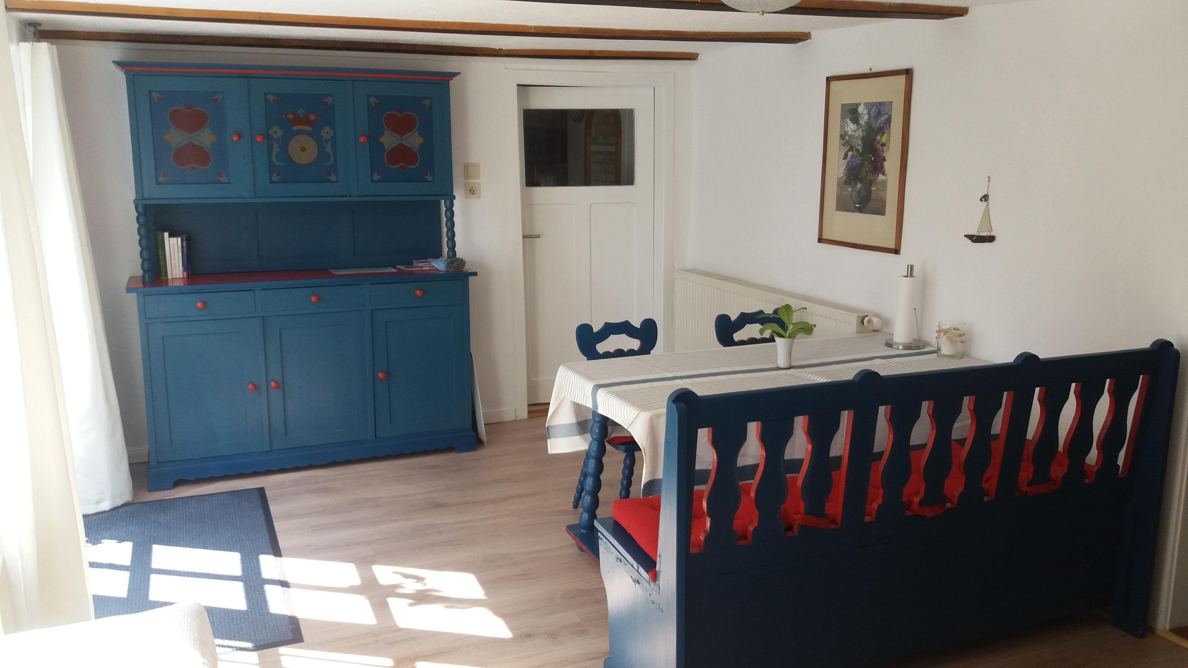 Gemütliche Ferienwohnung mit Reetdach in einem historischen Kapitänshaus nahe Strand und Radweg.