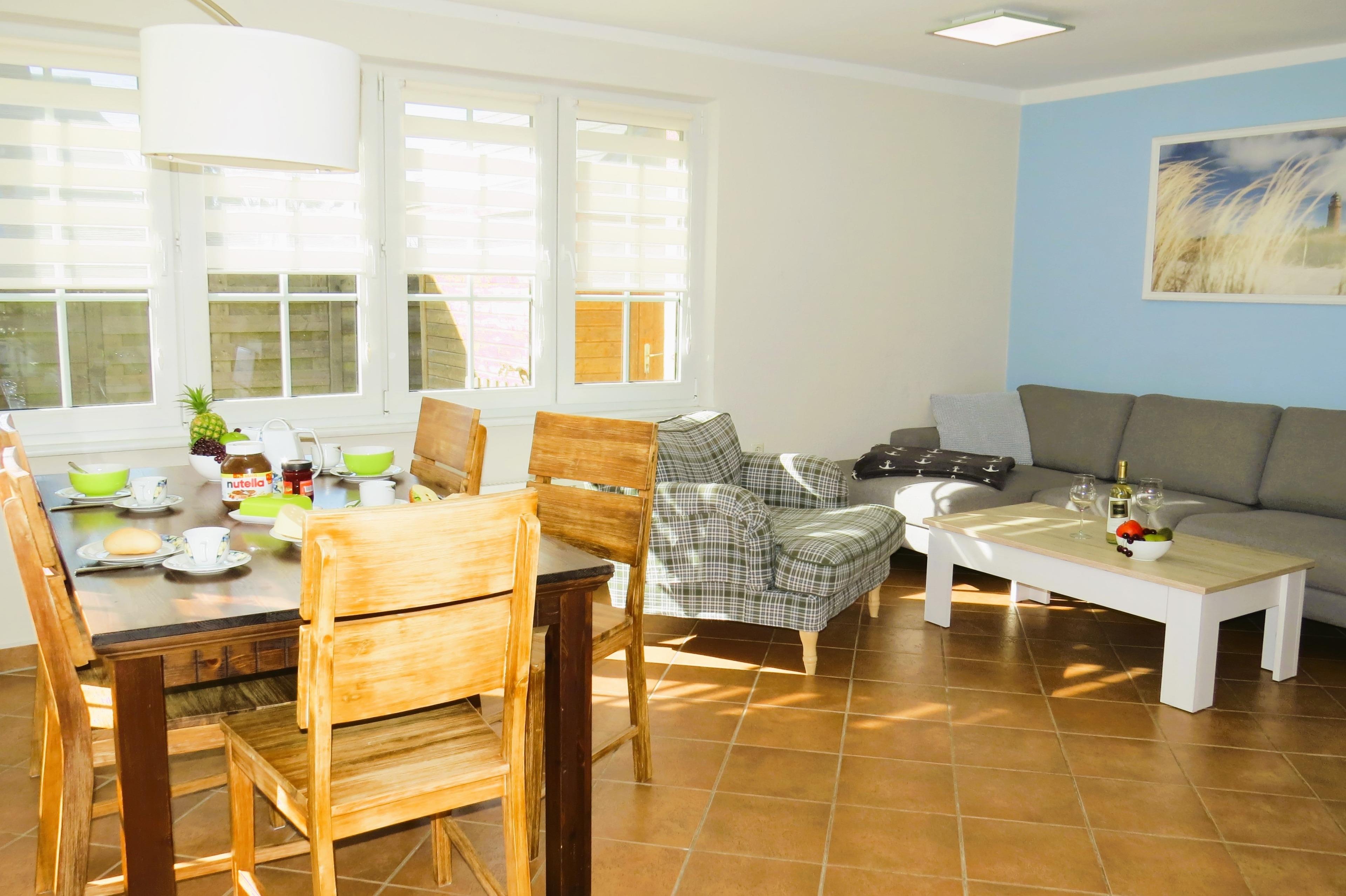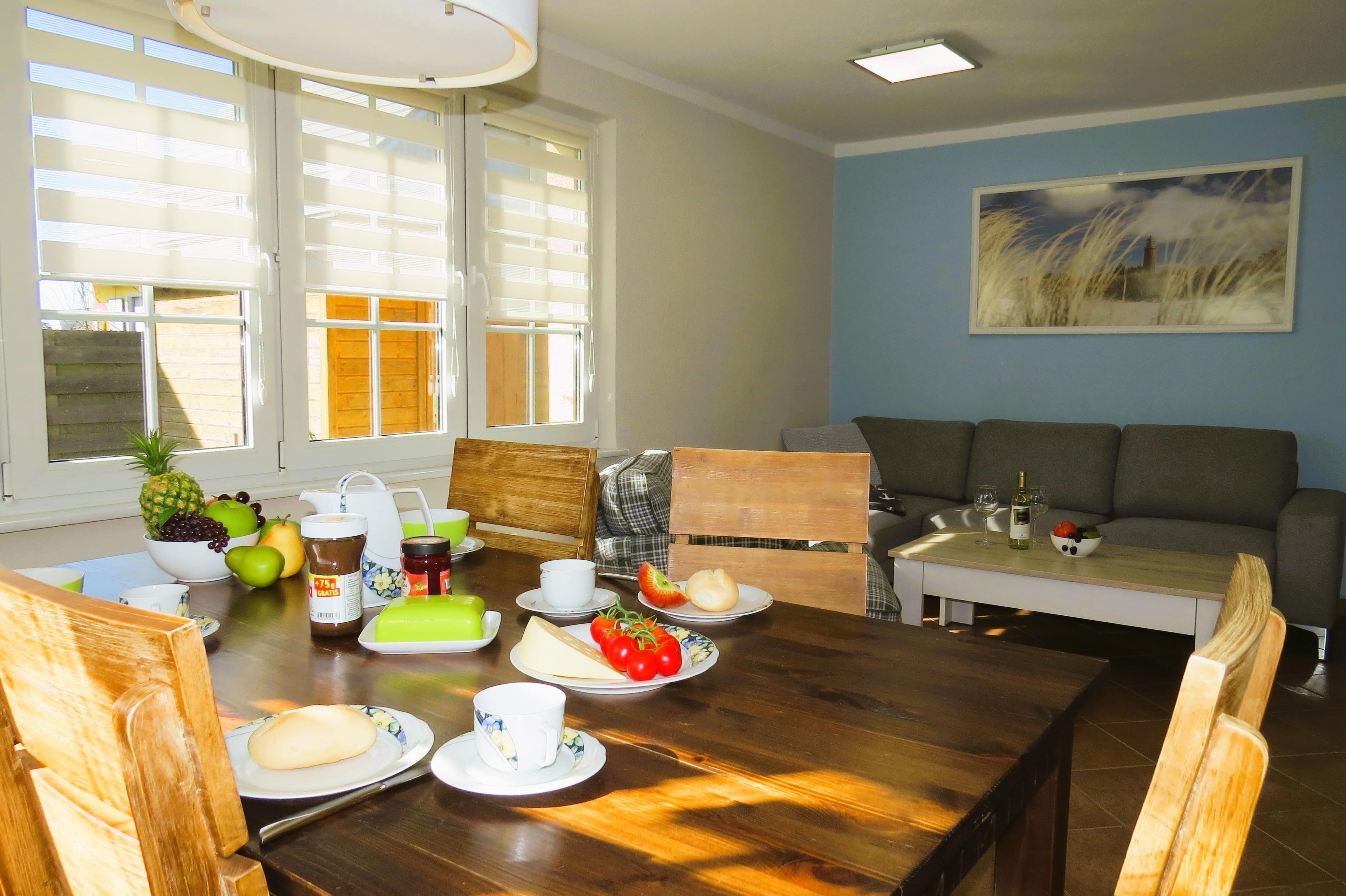Abends können Sie entspannt in unserem Wohn- und Esszimmer die Füße hoch legen. Neben genügend Büchern, Spielen und auch Spielsachen für die Kleinen, sind mit unserem Sat-TV alle wichtigen deutschen Sender vorhanden.