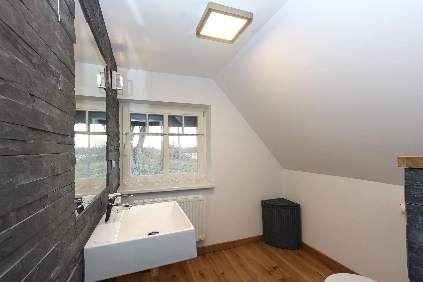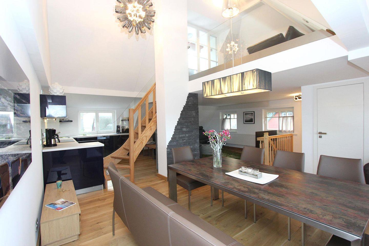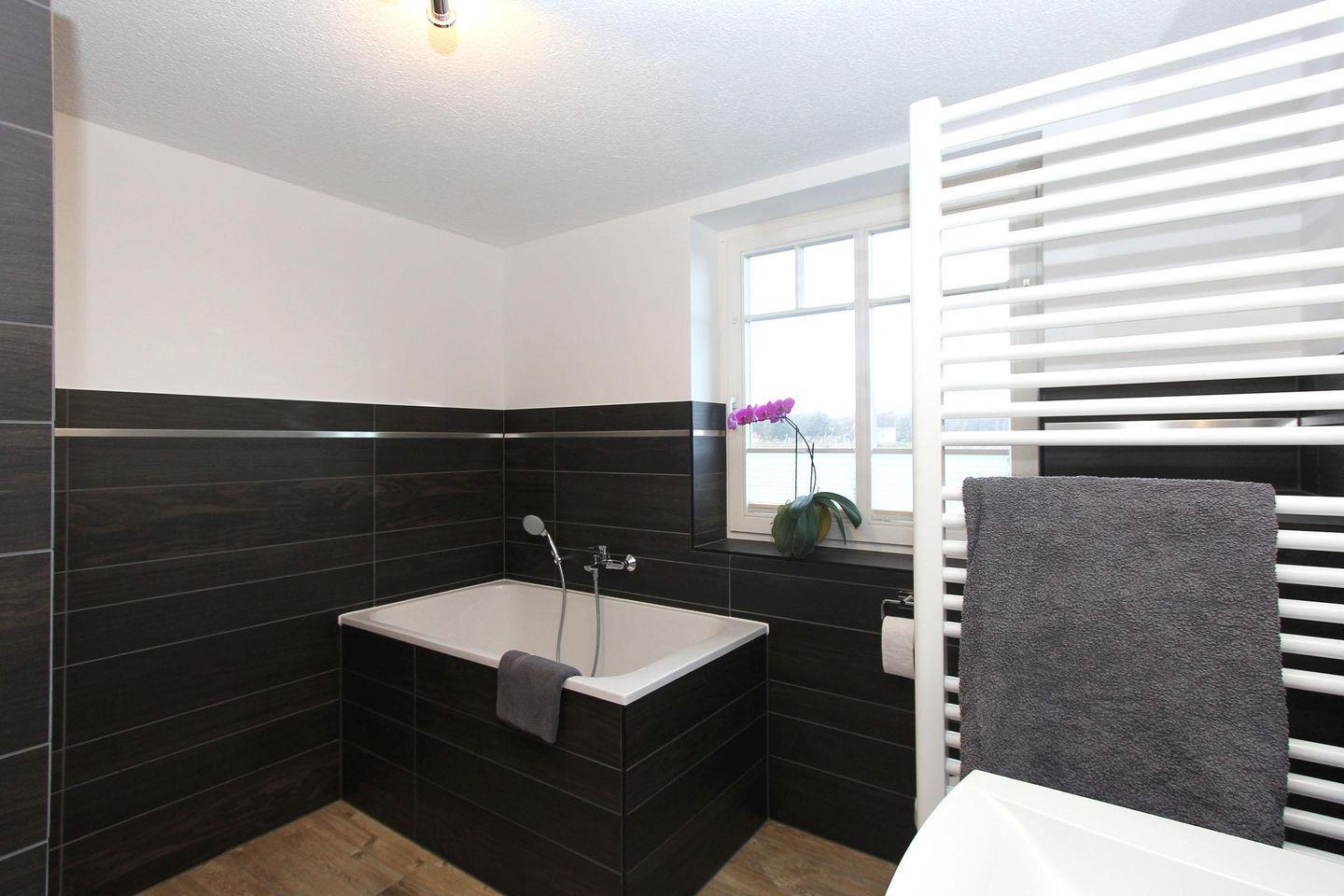Das Herz dieser exklusiven rohrgedeckten Doppelhaushälfte bildet der Wohn- und Essbereich in den oberen Etagen. Ob gemeinsame Kochstunden an der geräumigen und hellen Küche, gesellige Mahlzeiten und Spielabende am großen Esstisch, gemütliche Fernsehabende auf der Couch oder Lesestunden mit Wiesenblick im Dachgeschoss - hier bleiben keine Wünsche offen. Im Obergeschoss befindet sich ein separates WC.