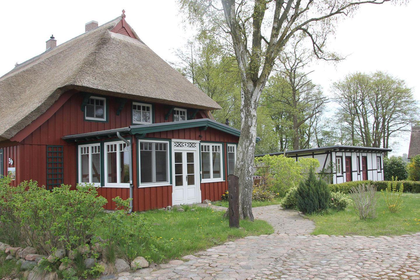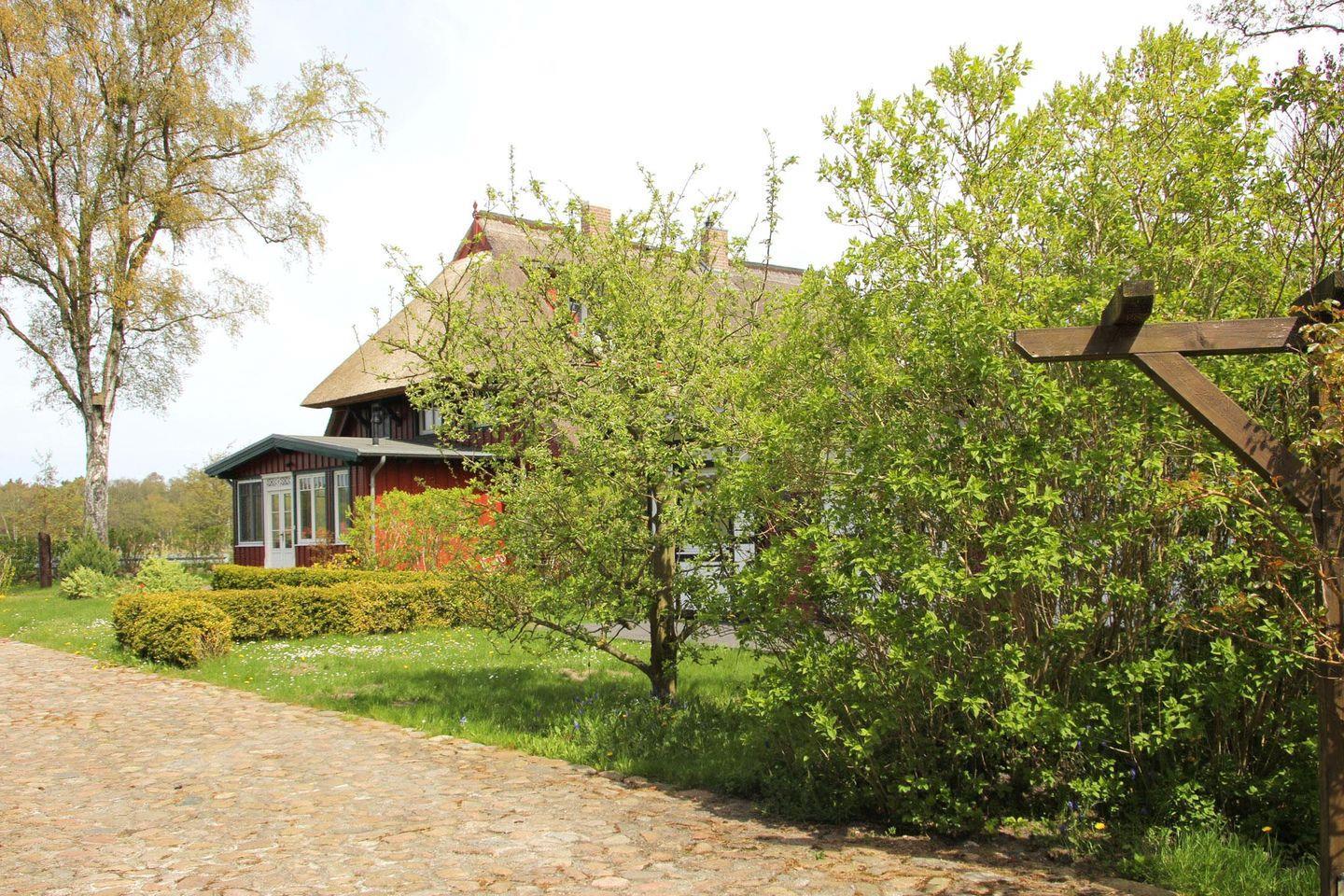 Das rohrgedeckte Ferienhaus "Am Prerowstrom" in Prerow bietet gemütliche Erholung nahe Wald und Strand mit herrlichem Wiesenblick.
