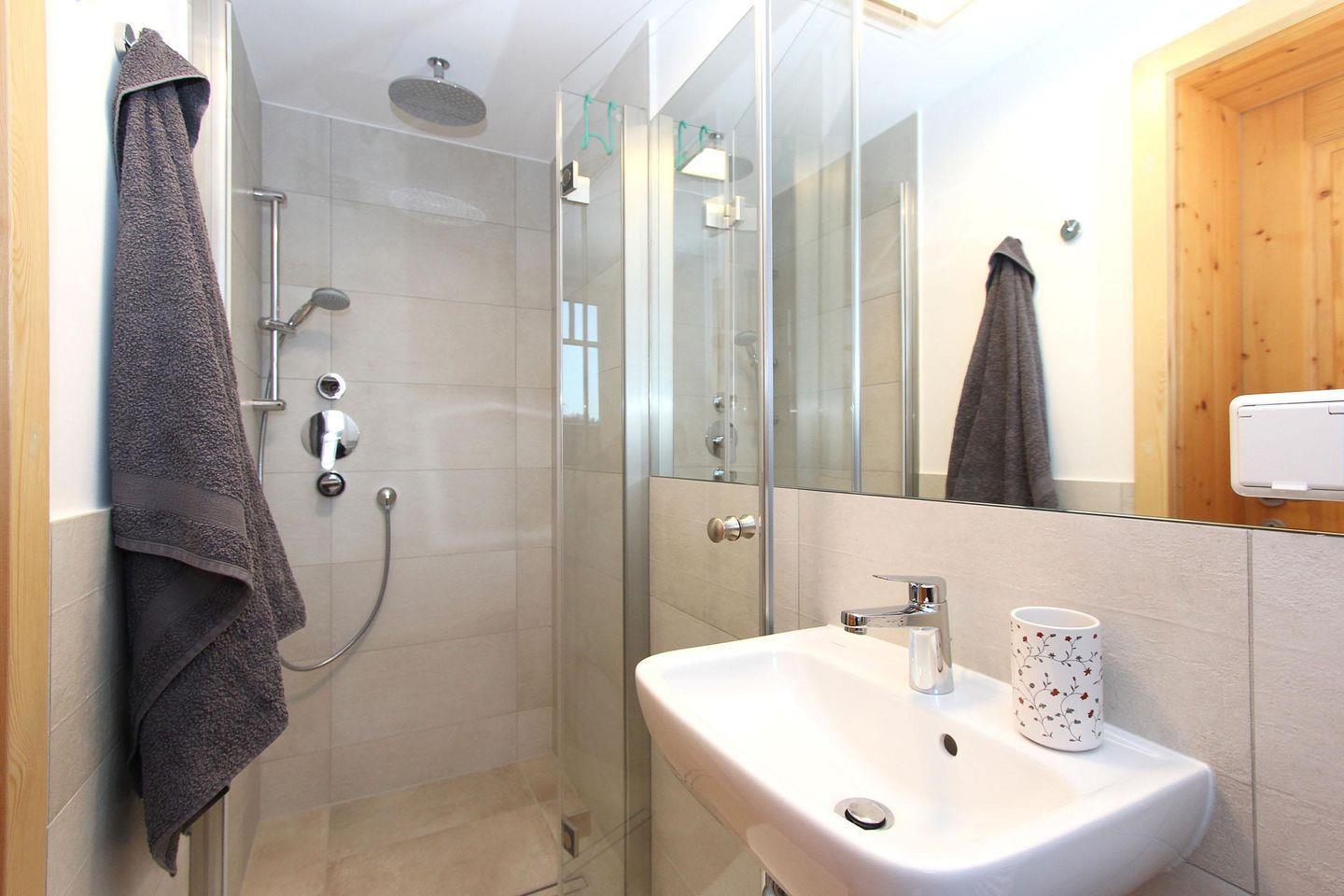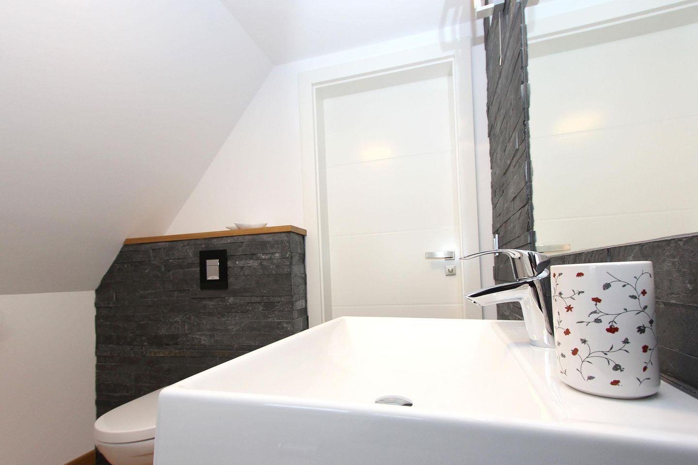 Im Erdgeschoss befinden sich die 3 großen Schlafzimmer. Alle drei Schlafzimmer sind mit einem Doppelbett und einem großen Kleiderschrank ausgestattet. Eines der Schlafzimmer verfügt über ein separates Badezimmer mit Dusche und WC und in dem zweiten Schlafzimmer gibt es ein Waschbecken. Zusätzlich dazu befindet sich auf der unteren Etage ein Badezimmer mit Dusche, Badewanne und WC.