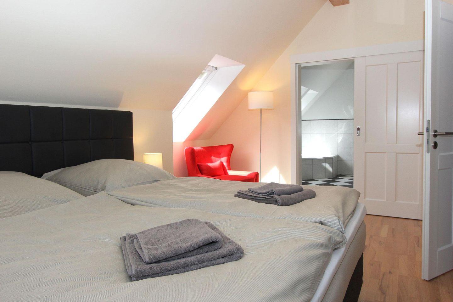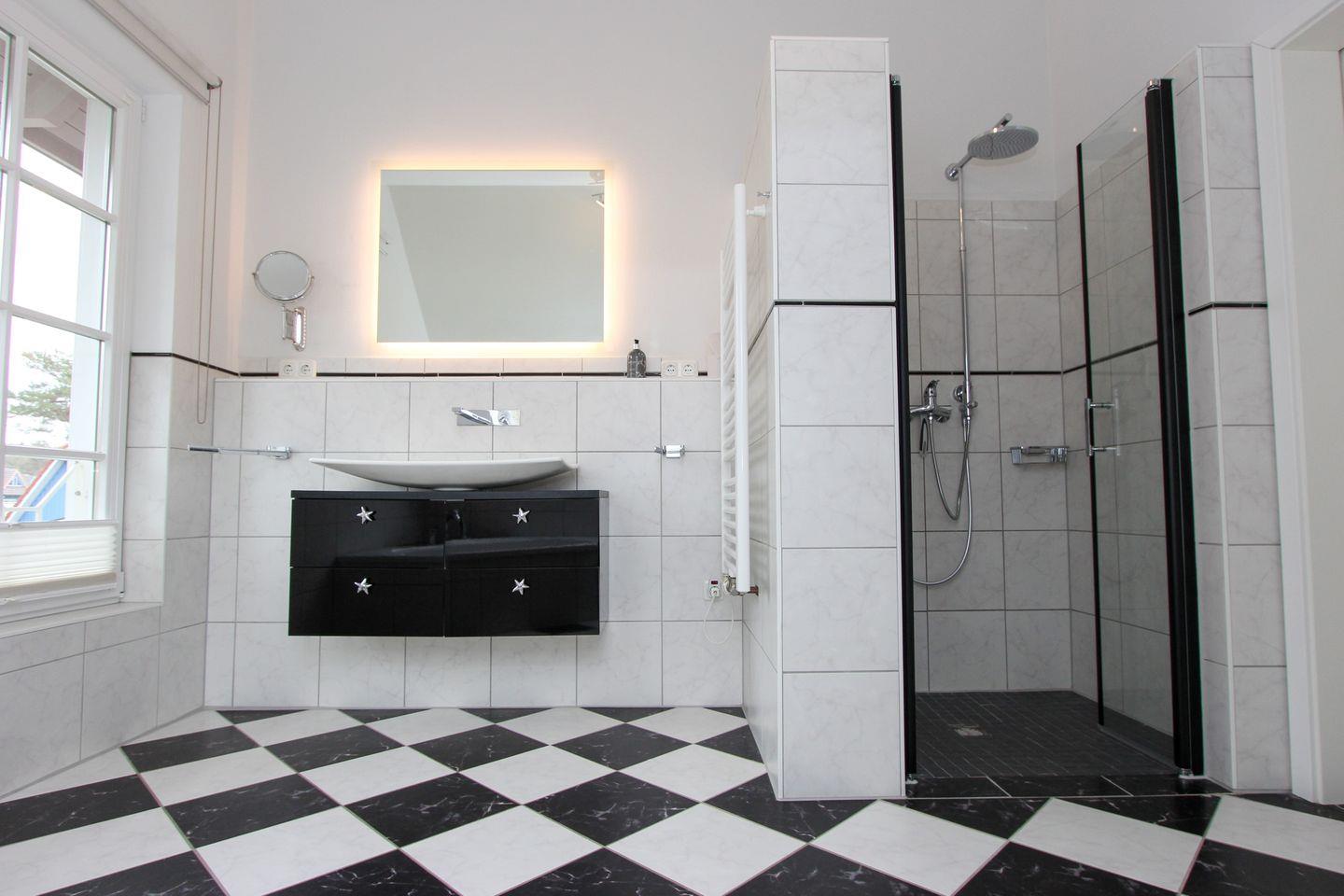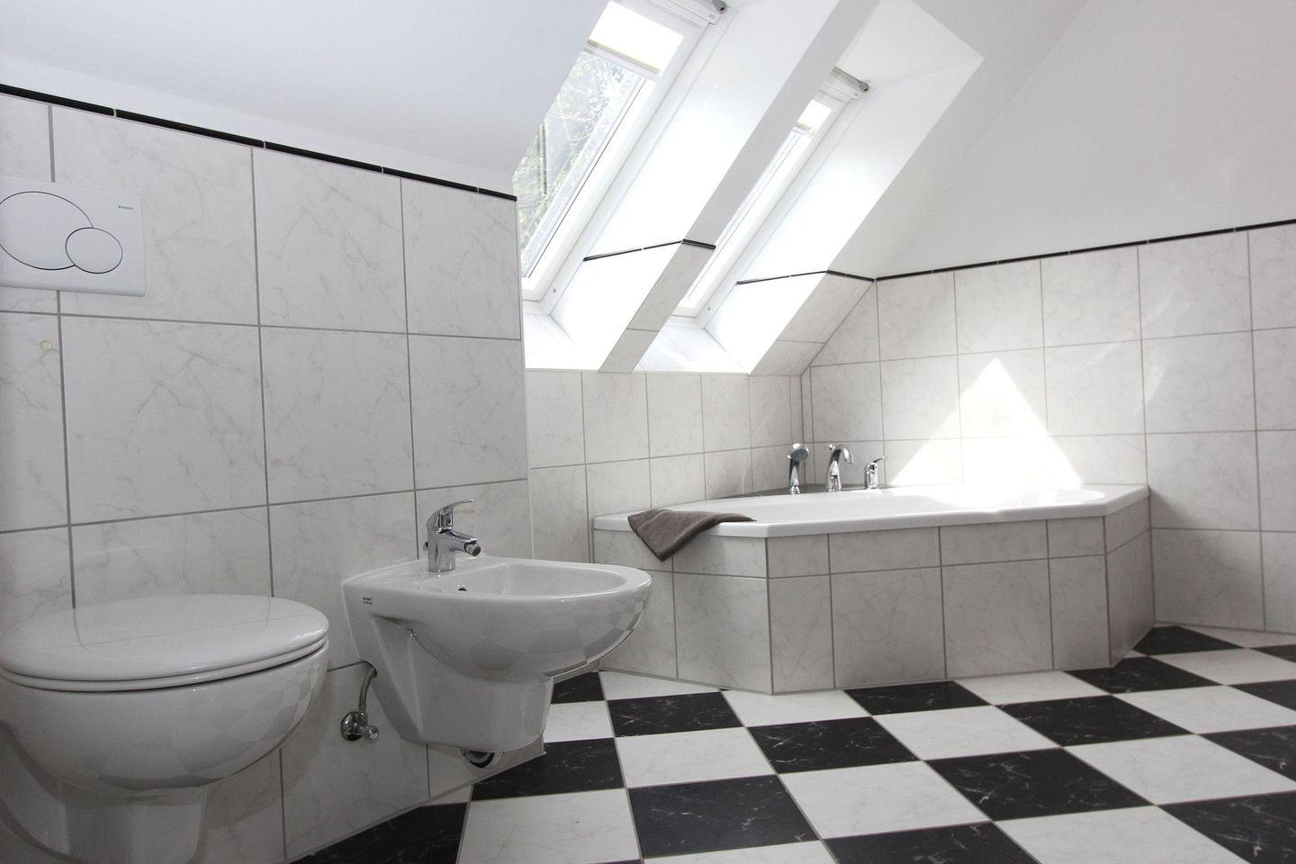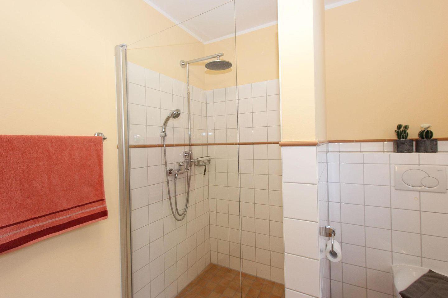 Das Haus hat zwei große Badezimmer, eines mit Badewanne, Dusche und Bidet im Obergeschoss und das andere im Erdgeschoss mit sehr geräumiger Dusche. In der oberen Etage befinden sich weiterhin die beiden Schlafräume und eine Galerie mit einer Leseecke.