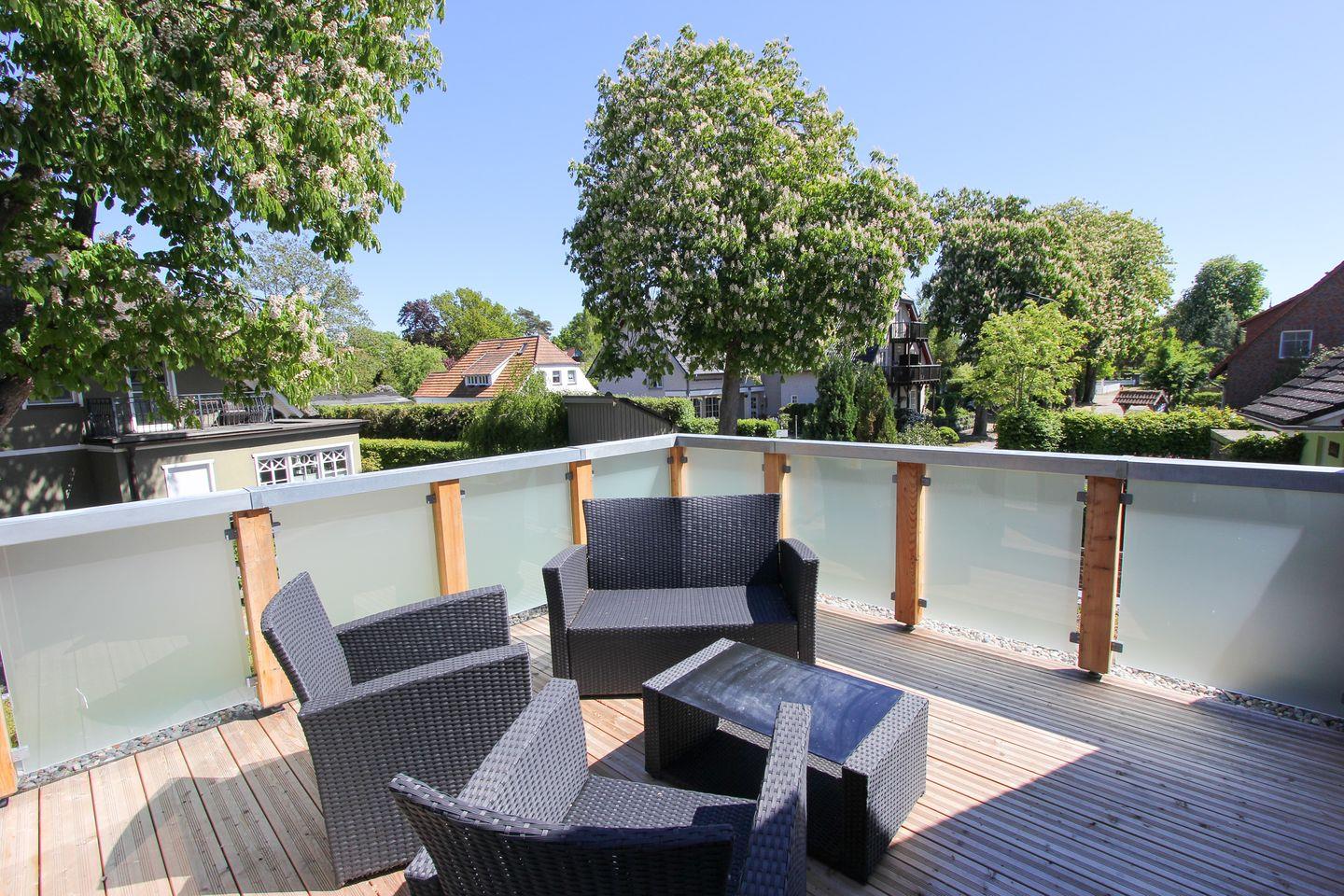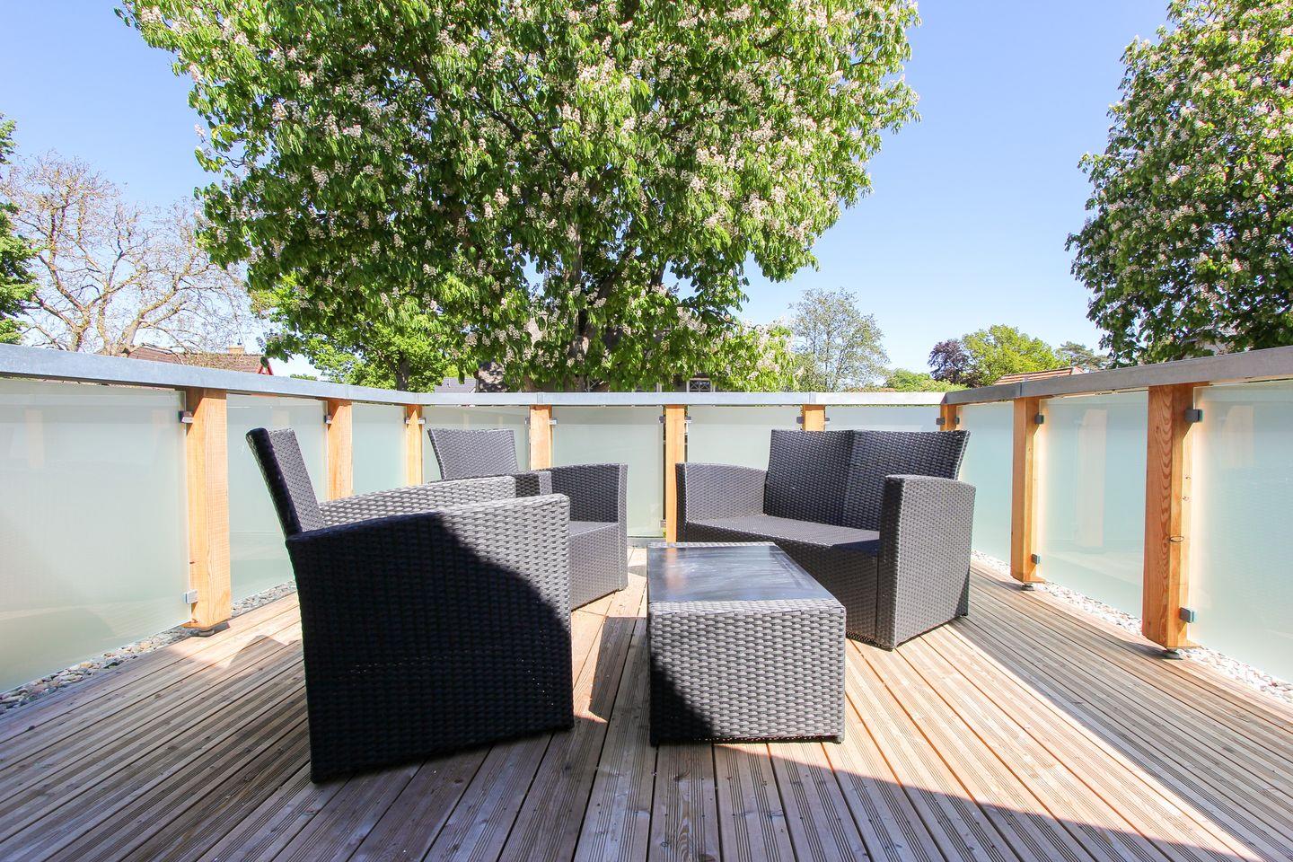 Charmante Ferienwohnung Rosalie im Herzen von Prerow mit Balkon, moderner Küche und WLAN für erholsamen Ostseeurlaub.