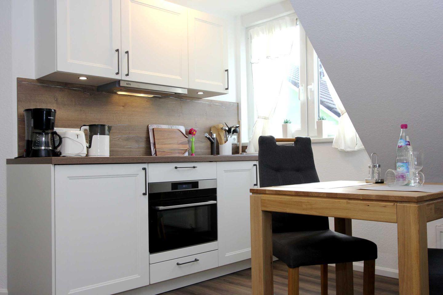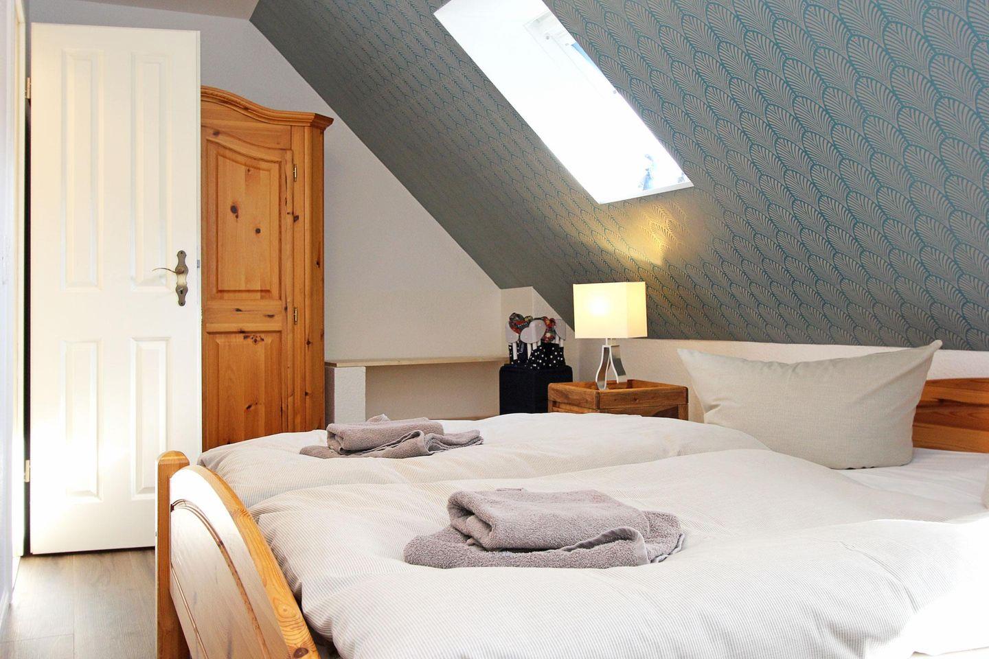Die Wohnung befindet sich im Obergeschoss eines Hauses mit insgesamt vier Wohnungen. Im Wohnbereich finden Sie eine gemütliche Couch und Sessel für Ihre Fernsehabende. Das komfortable Schlafzimmer mit großen Fenstern und das helle, geräumige Bad runden die Ferienunterkunft ab. Auf dem Balkon können sie an lauen Sommerabenden den Tag sanft ausklingen lassen.