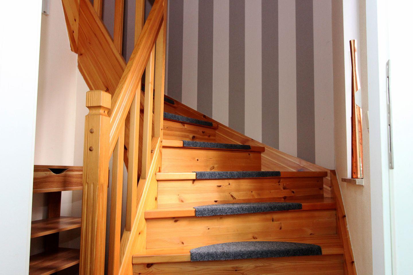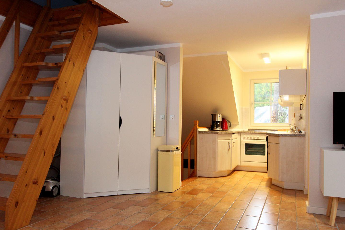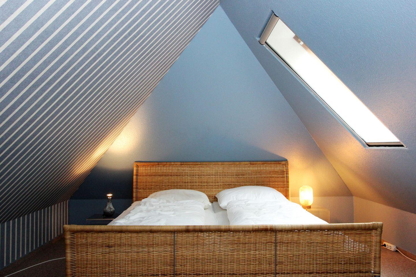Strandparadies 2 befindet sich im 1. und 2. OG des Hauses. In der Wohnung befindet sich ein großer Wohn-, Koch- und Essbereich, sowie ein Schlafzimmer im Dachgeschoss. Im Schlafzimmer ist ein gemütliches Doppelbett. Dieses ist über eine recht steile Treppe zu erreichen. Als weitere Schlafgelegenheit steht Ihnen ein Klappbett zur Verfügung. Des Weiteren enthält die Wohnung eine vollständig ausgestattete kleine Küche und eine Waschmaschine.