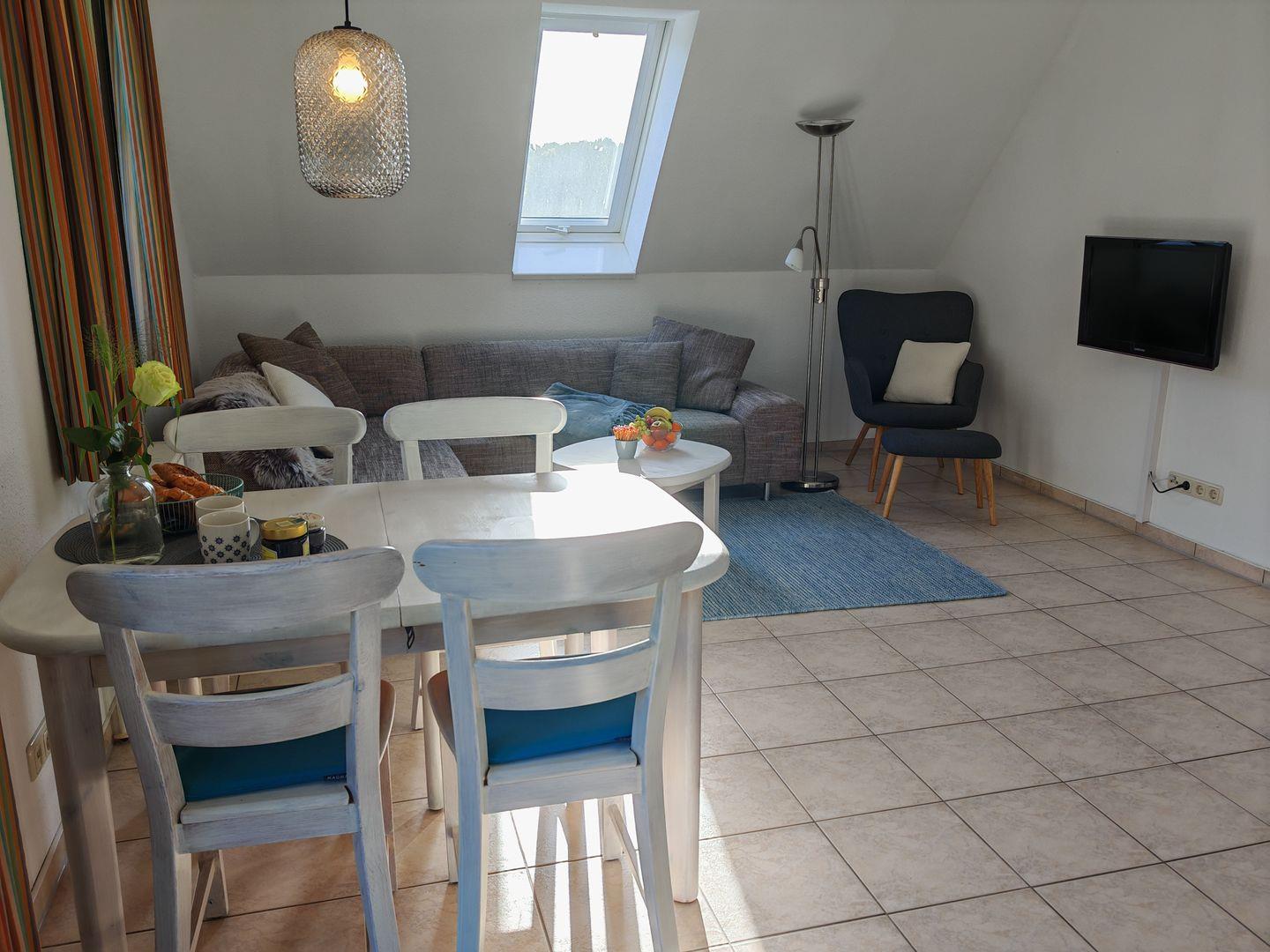 Gemütliche 52 qm Ferienwohnung mit Südwestbalkon, voll ausgestatteter Küche und hellem Wohnzimmer in Prerow.