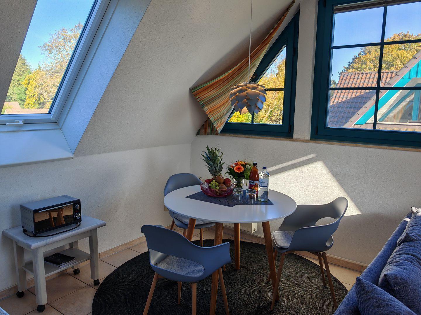 Willkommen in unserer 36 m² großen 1-Zimmer-Ferienwohnung (ehemals "Merle")! Die offene Küche bietet modernen Komfort. Entspannen Sie auf dem gemütlichen Sofa vor dem TV. Das Tageslichtbad sorgt für eine helle Atmosphäre. Das Doppelbett lädt zu erholsamen Nächten ein. Perfekt für Paare oder Alleinreisende, um die Umgebung zu erkunden und in gemütlicher Atmosphäre zu entspannen.