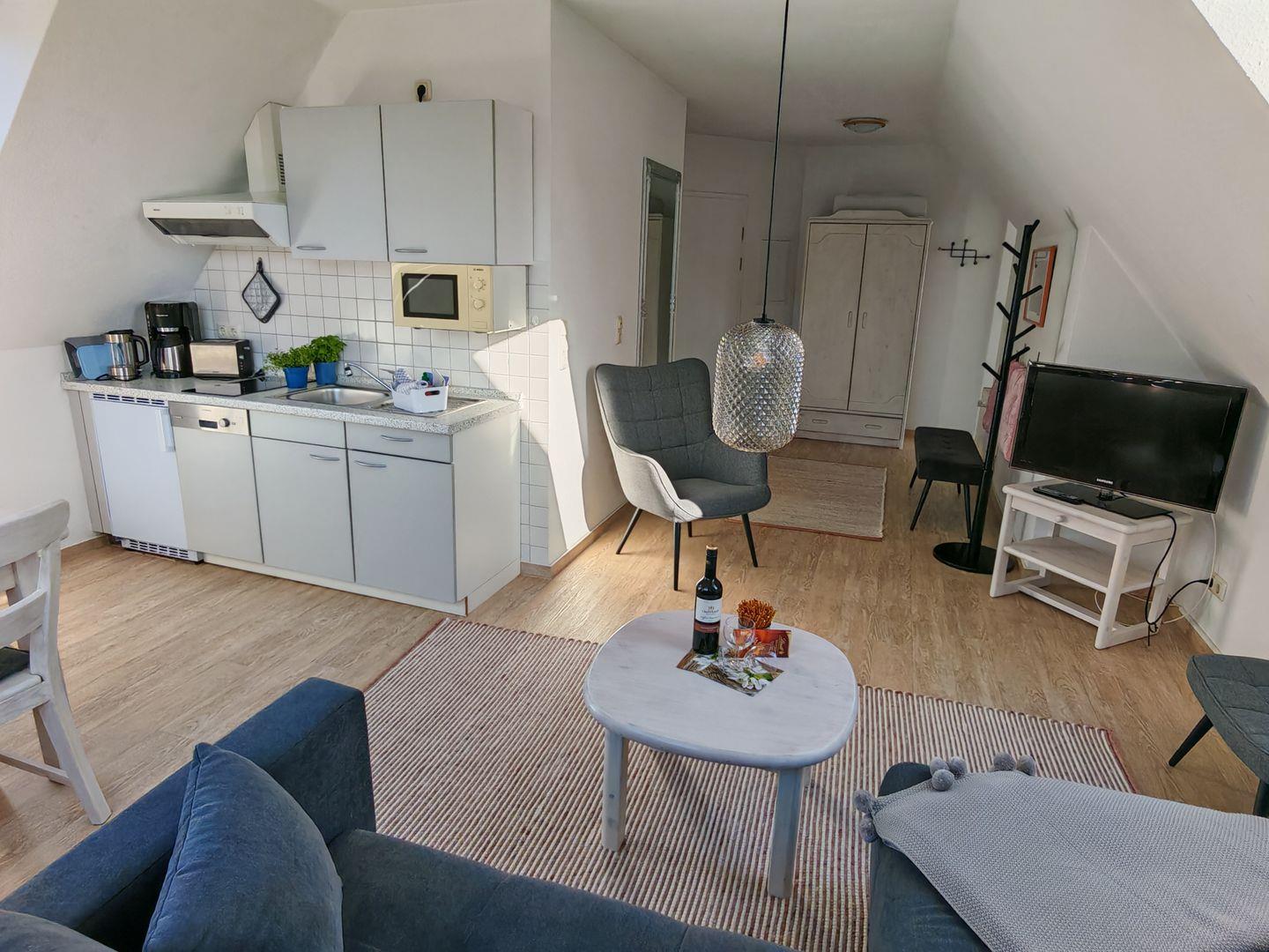 Entdecken Sie unsere lichtdurchflutete 2-Zimmer-Ferienwohnung (46 qm) ehemals "Börge" – ein perfekter Rückzugsort. Das Schlafzimmer begeistert mit einem Südbalkon, die offene Küche ist modern ausgestattet. Das gemütliche Sofa und ein Sessel schaffen eine entspannte Atmosphäre. Im Tageslichtbad finden Sie Komfort und Stil. Ideal für Paare oder kleine Familien, um die Umgebung zu erkunden und in angenehmer Atmosphäre zu entspannen.