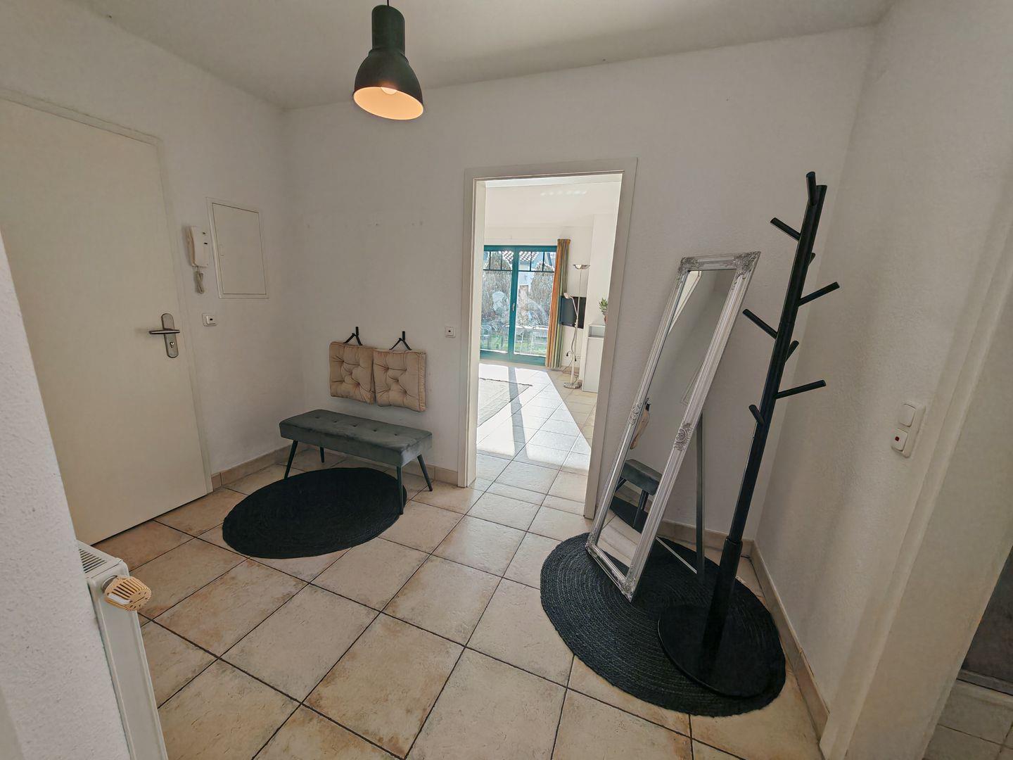 Die Südterrasse ist ein Highlight der Wohnung und bietet einen wunderbaren Ort, um die Sonne zu genießen oder gemütliche Abende im Freien zu verbringen. Hier können Sie bei einem Glas Wein den Tag ausklingen lassen oder morgens mit einer Tasse Kaffee in der Hand die Natur um sich herum erleben.