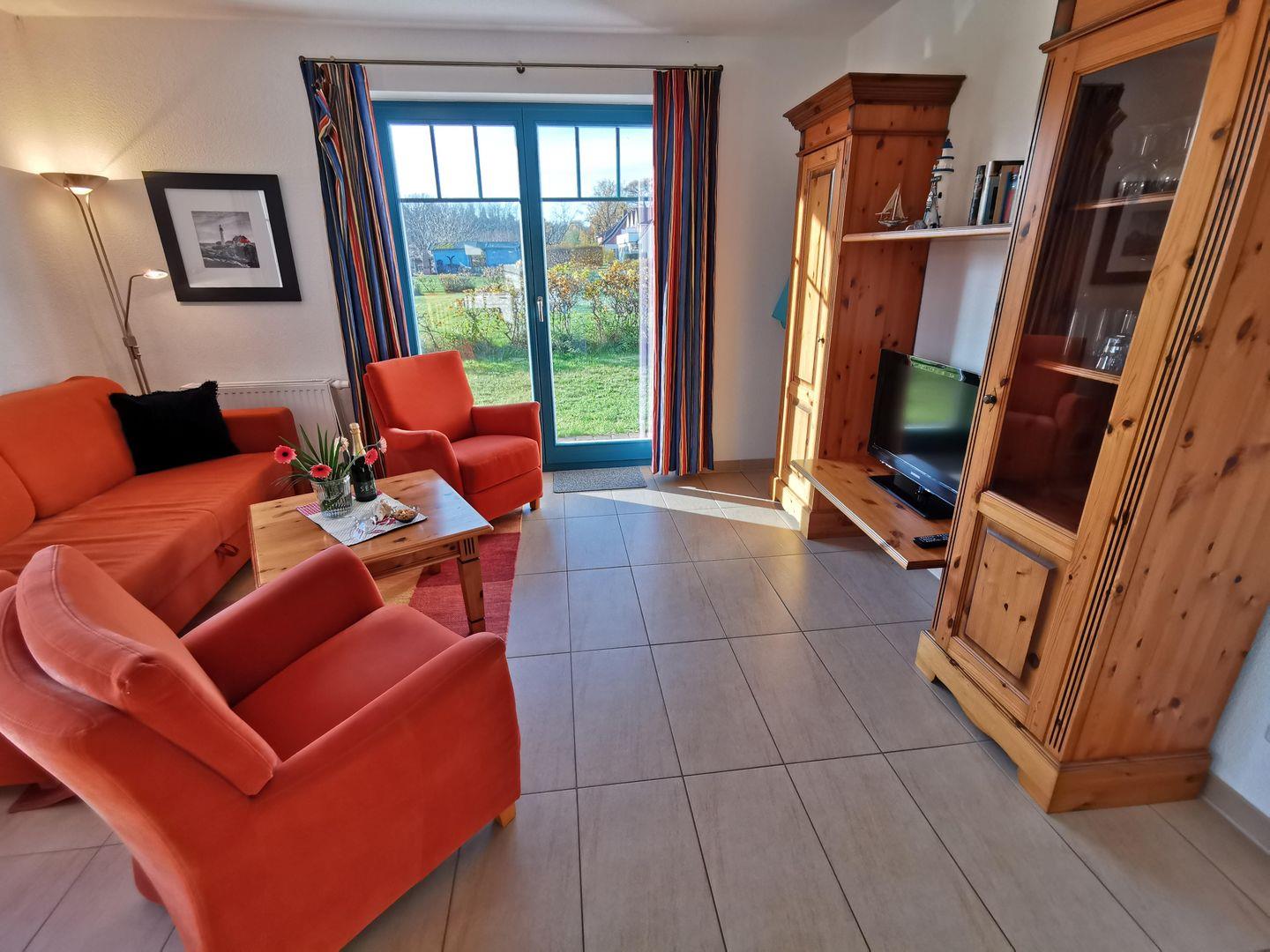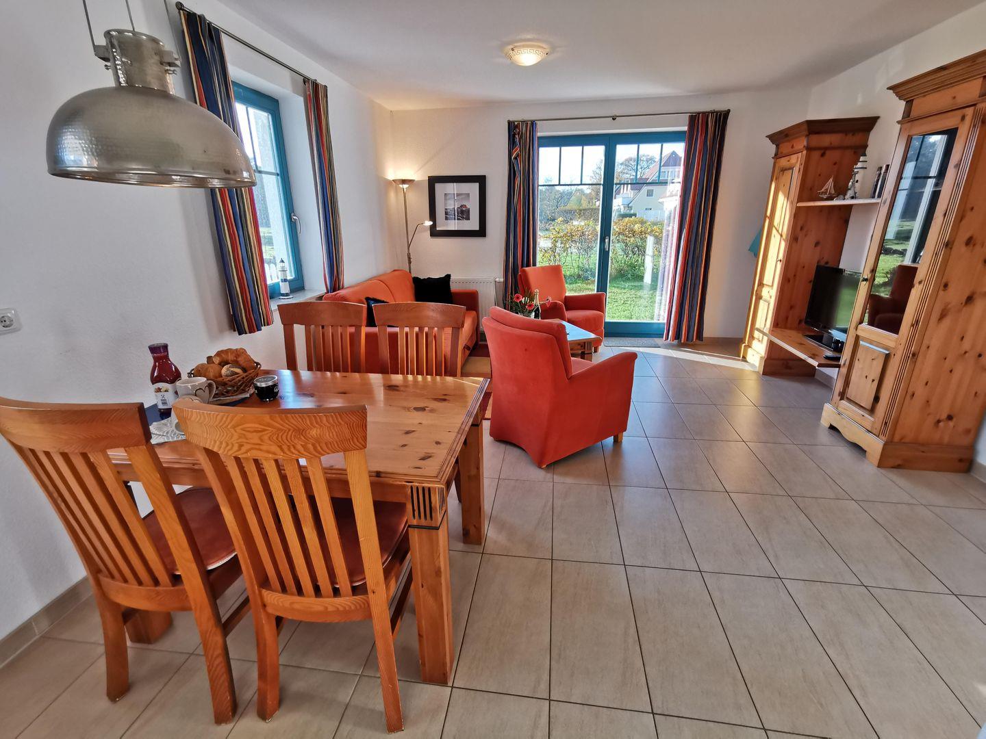 Sonnige Erholung im Capitän Christoph: 48 qm Ferienwohnung mit 2 Zimmern und großer Südterrasse.