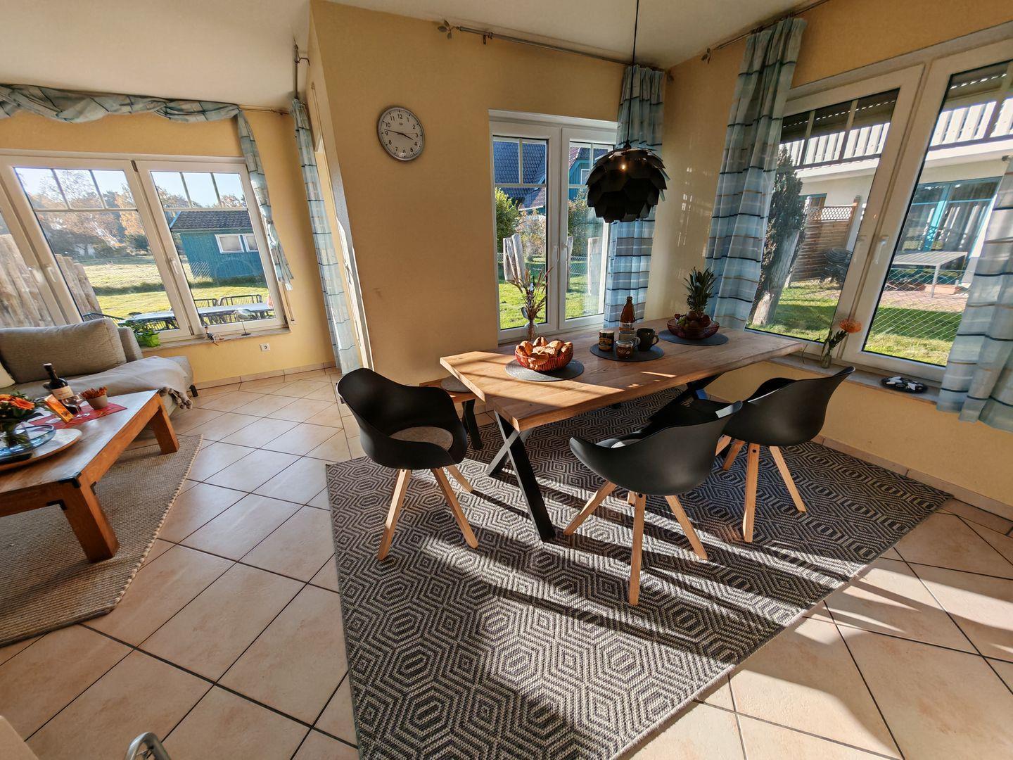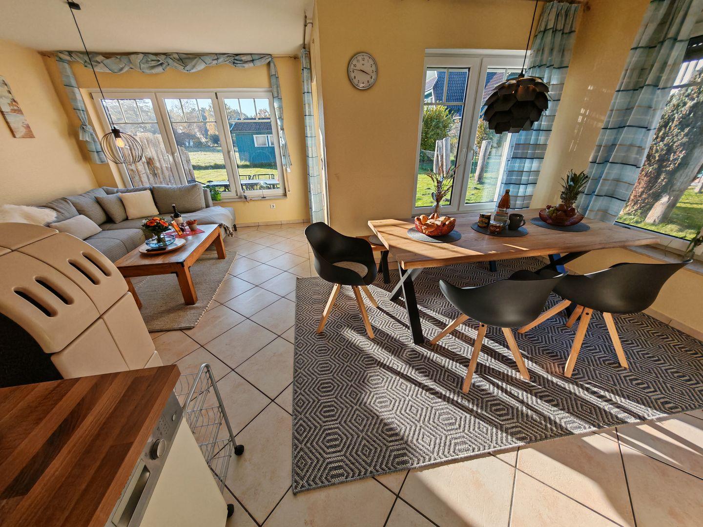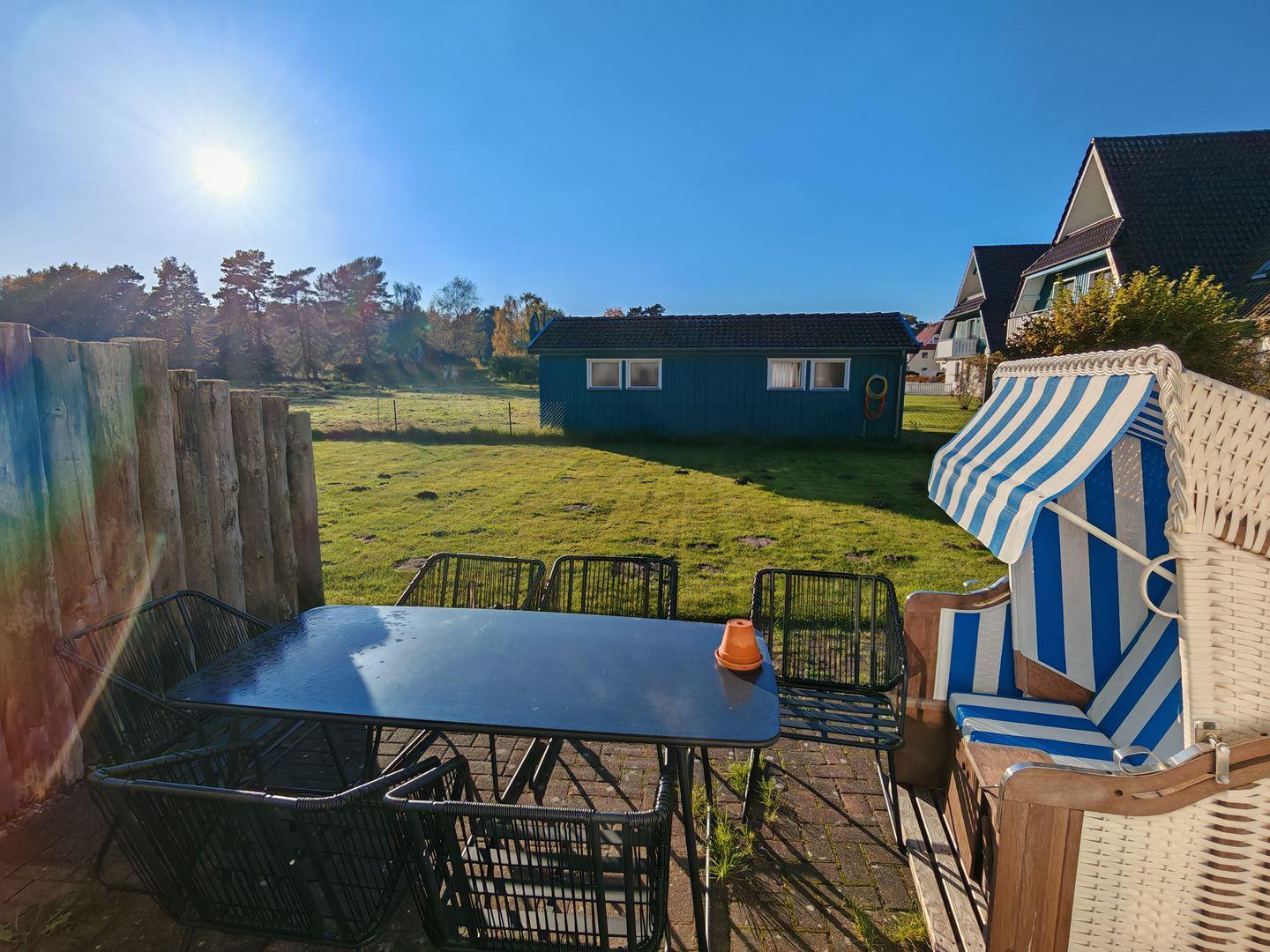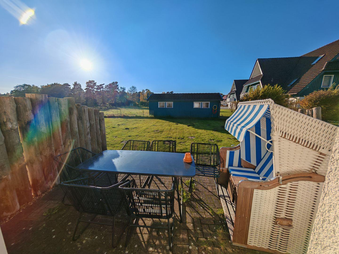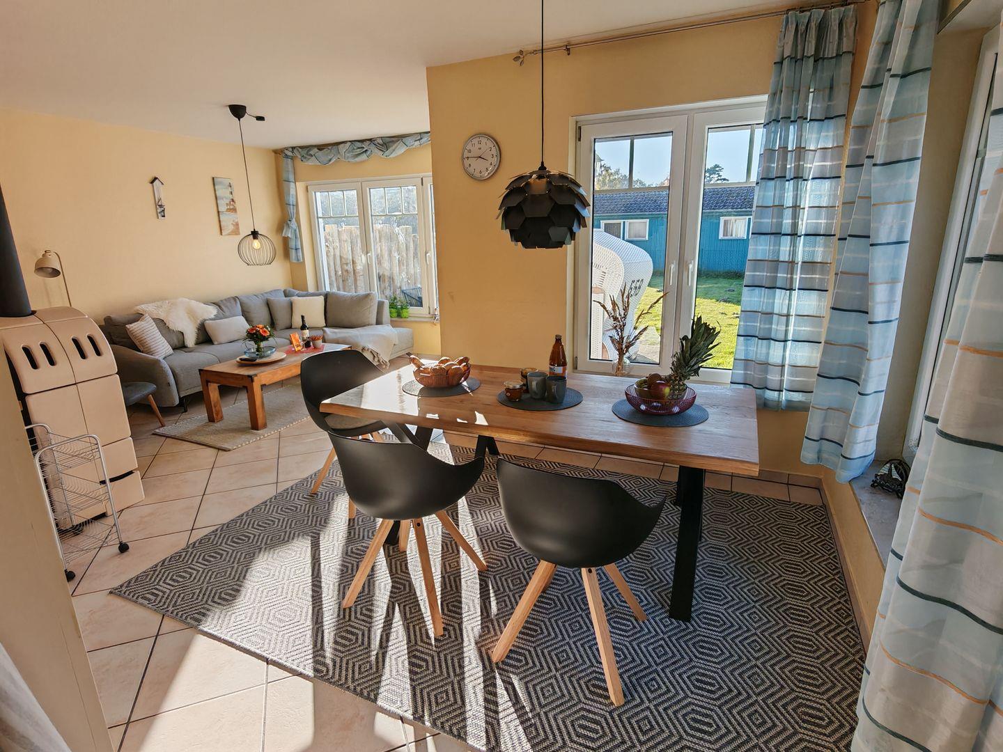 Idyllisches Ferienhaus in Prerow mit Kaminofen, Sauna und Südostterrasse für entspannte Urlaubstage.