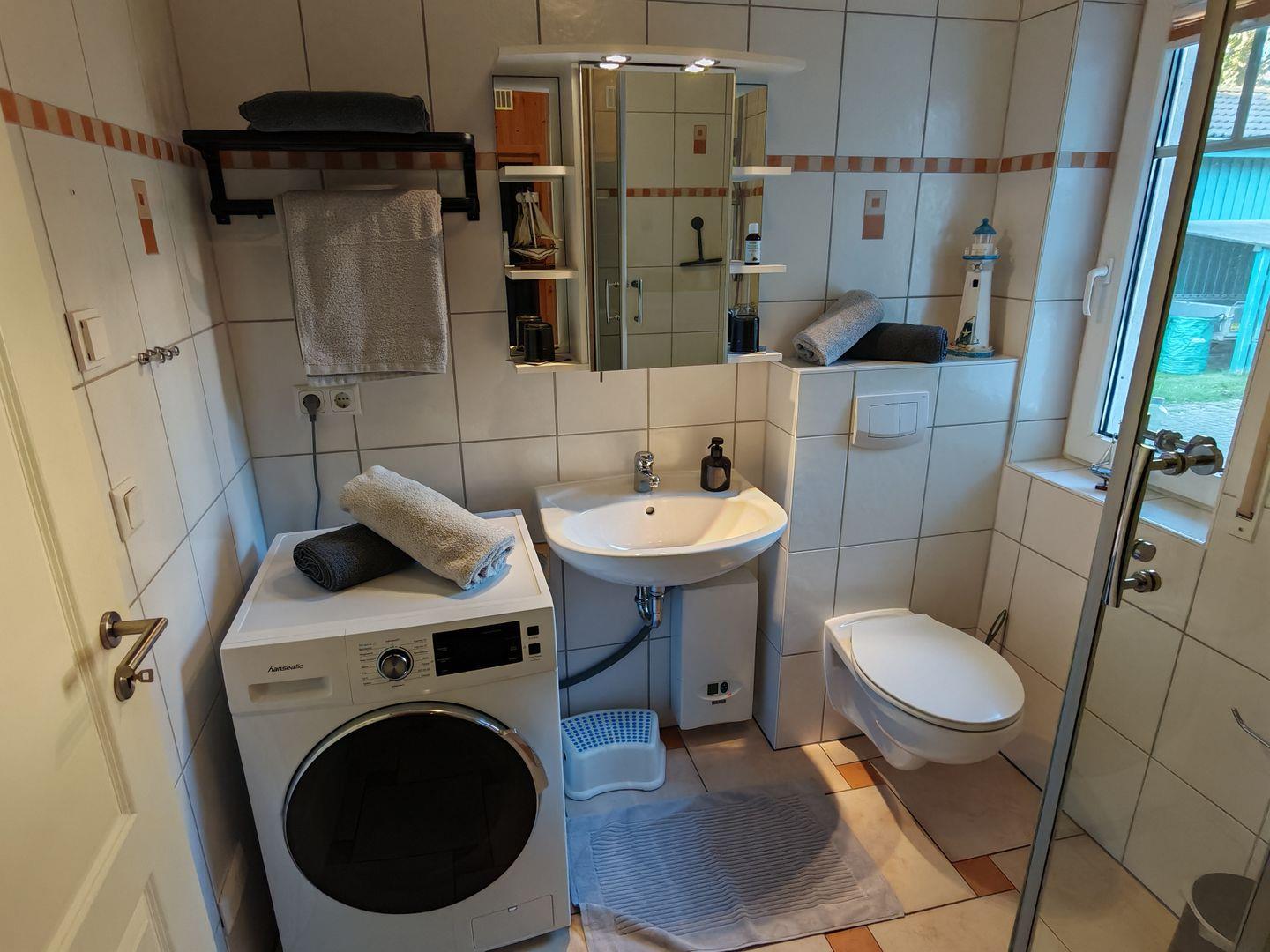 Zwei moderne Duschbäder mit Tageslicht sorgen für Frische und Komfort. Zusätzlich steht Ihnen eine Waschmaschine zur Verfügung, um auch während Ihres Aufenthalts den gewohnten Komfort zu genießen.