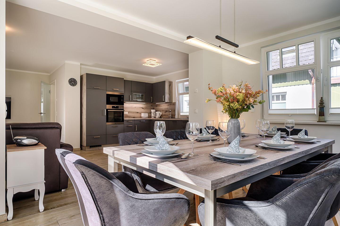Darßveranda mit großzügigem Esstisch und Ausblick
