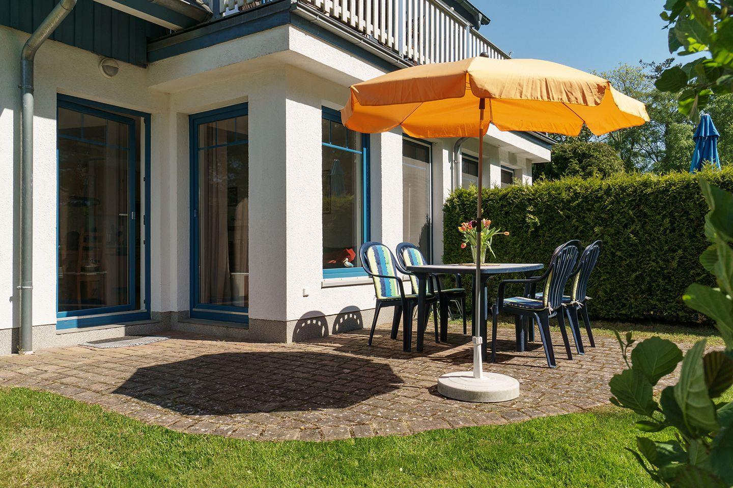 Gemütliche Ferienwohnung im Ortskern von Prerow mit Südterrasse, Sauna und WLAN, ideal für Familien und Paare.