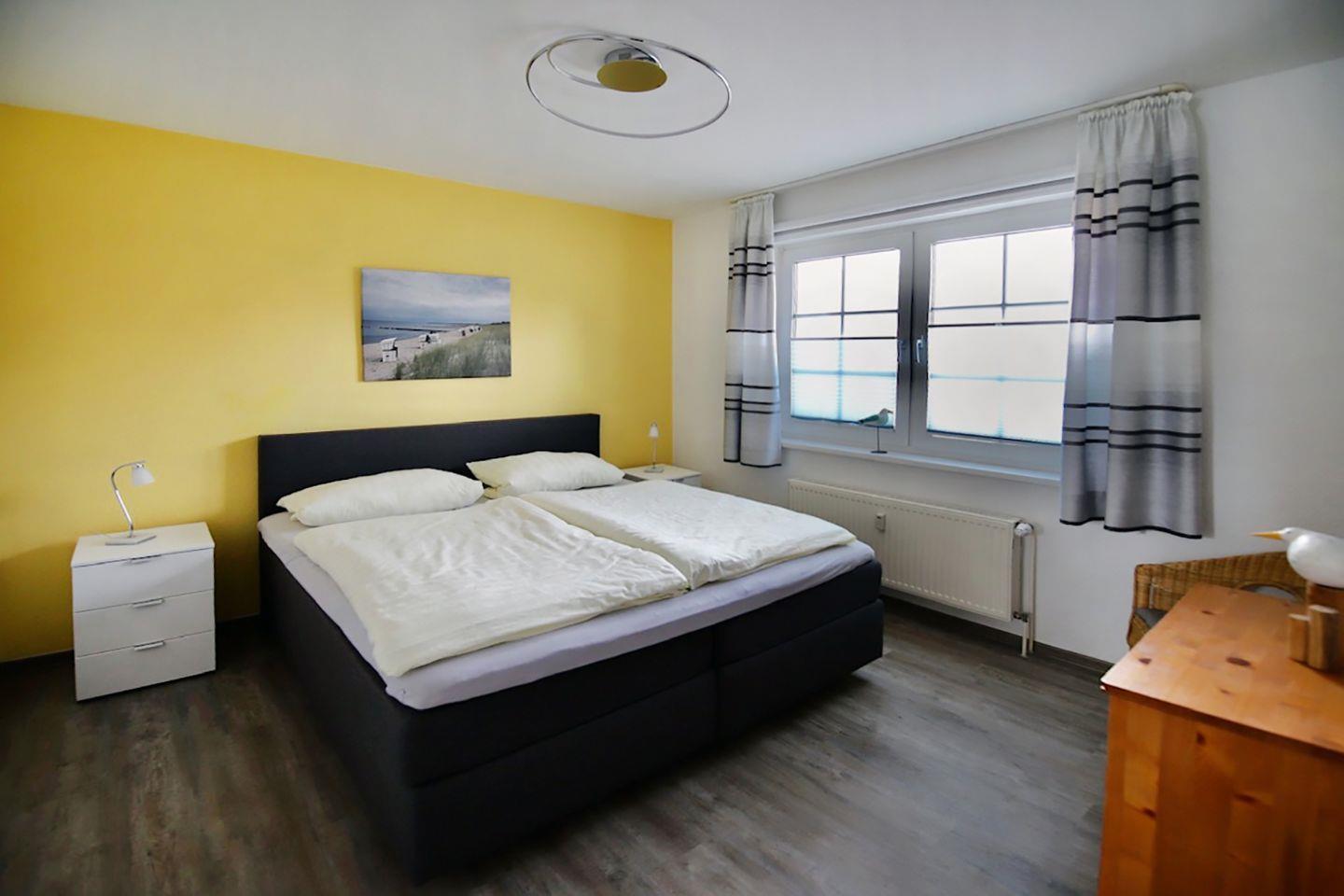 Ferienwohnung bis 4 Personen | Ca. 84 m2 Wohnfläche | EG Wohnbereich mit Küchenzeile, Bad, Gäste-WC, 2 Schlafzimmer | Süd-Terrasse | 1 Parkplatz | Wohnbereich Esstisch, Schlafsofa, Sitzgarnitur, Radio mit CD-Player, SAT-TV | Küchenzeile Backofen, Herd, Geschirrspüler, Kühlschrank mit Gefrierfach, Kaffeemaschine, Toaster, Wasserkocher, Mikrowelle | Bad bodengleiche Dusche mit Wandsitz, Dusch-WC, Kosmetikspiegel, Waschmaschine, Radio | Gäste-WC | 2 Schlafzimmer je 1 Boxspringbett (180 x 200 cm) | Kinderhochstuhl, Reisebett, Gartenmöbel, Strandkorb, Fahrradbox, Kugelgrill, WLAN