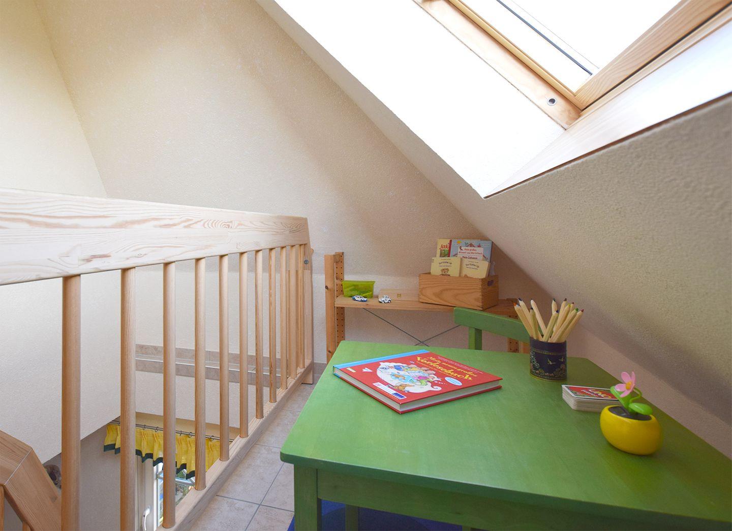 Die Wohnung bietet zusätzlich eine gemütliche Spielecke auf der Galerie, ideal für Kinder.