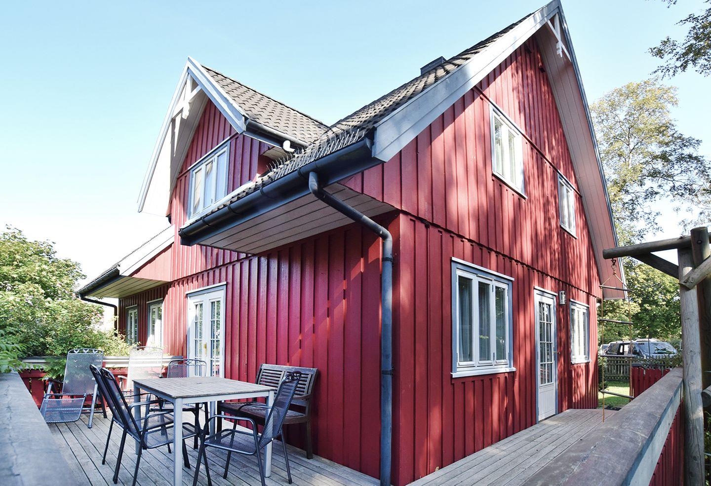 Die erhöhte Terrasse, die vom Wohnzimmer und der Küche aus erreichbar ist, lädt zum Verweilen ein, während eine Schaukel für zusätzliche Freizeitmöglichkeit sorgt.