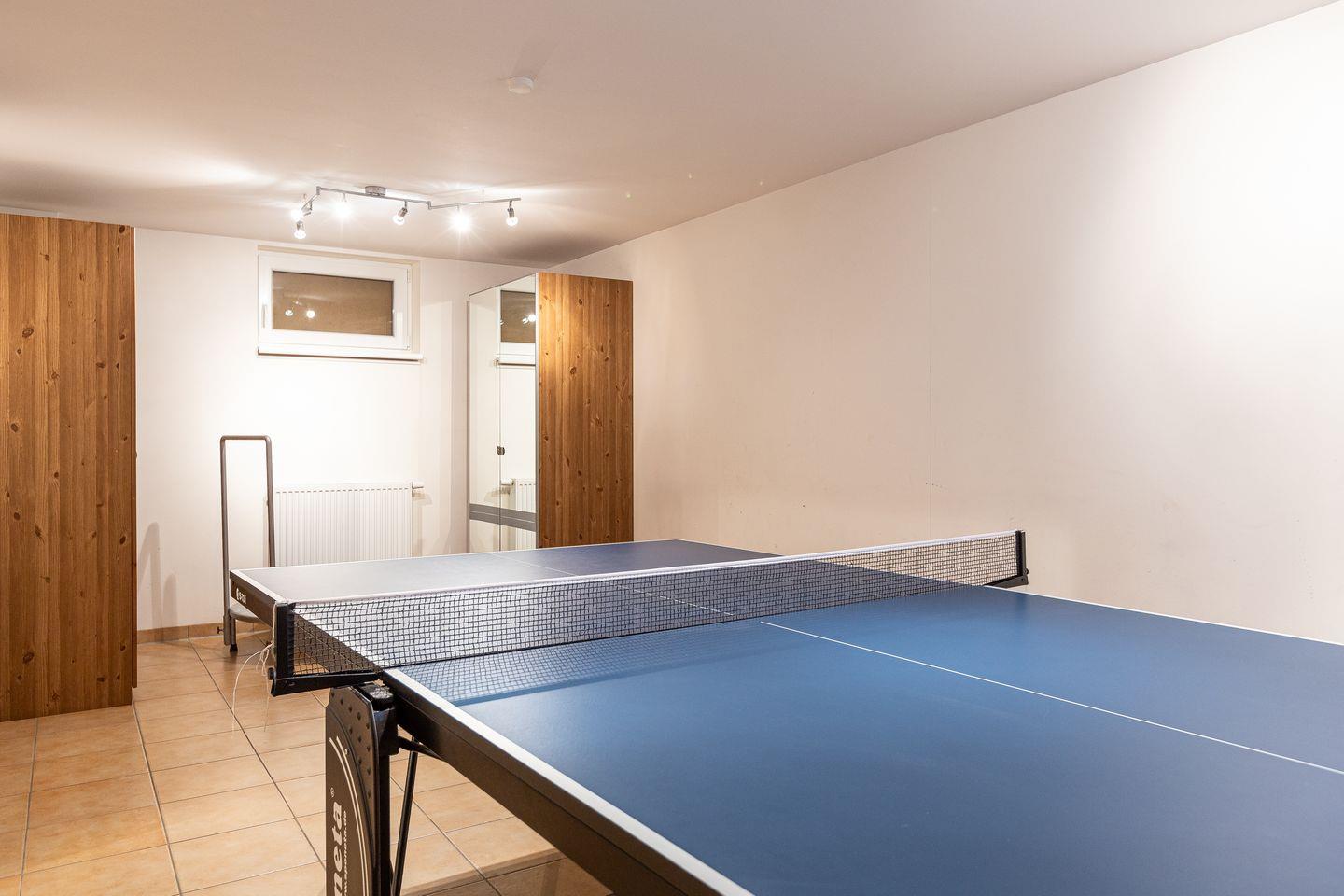 Im Keller stehen eine Sauna, eine Tischtennisplatte, eine Dartscheibe und ein Fitnessbereich mit Trampolin und Hometrainer als Schlechtwetter-Alternativen zur Verfügung. Für weiteren Komfort befindet sich auch im Untergeschoss eine Dusche und ein WC.