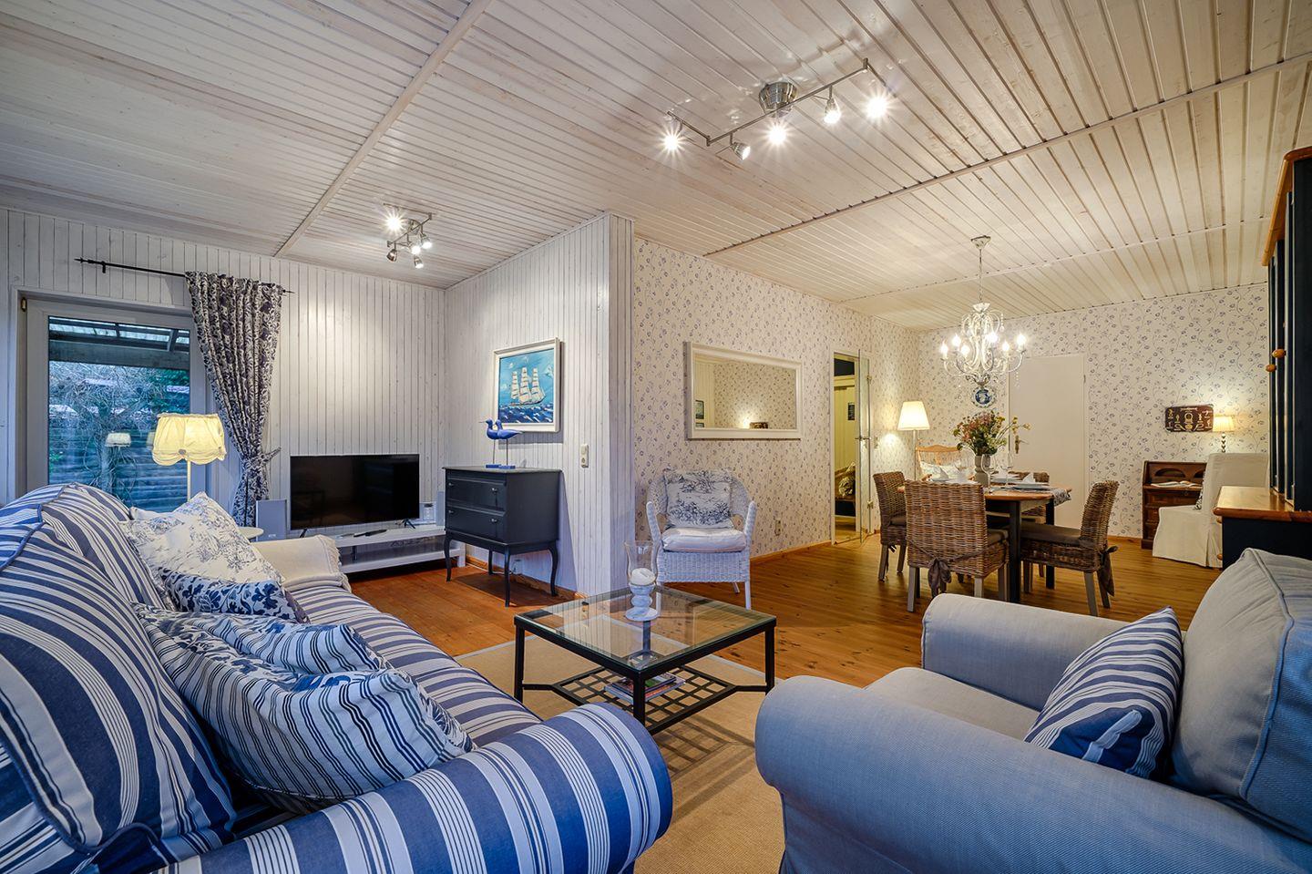 Willkommen in unserer gemütlichen Ferienwohnung für bis zu 2 Personen. Diese charmante Unterkunft bietet Ihnen auf ca. 75 m² Wohnfläche alles, was Sie für einen entspannten Aufenthalt benötigen. Im Erdgeschoss finden Sie einen einladenden Wohn-/Essbereich mit einem Esstisch, einem bequemen Sofa und einem Sessel, ideal für entspannte Abende. Für Ihre Unterhaltung stehen ein Radio mit CD-Player und SAT-TV zur Verfügung.