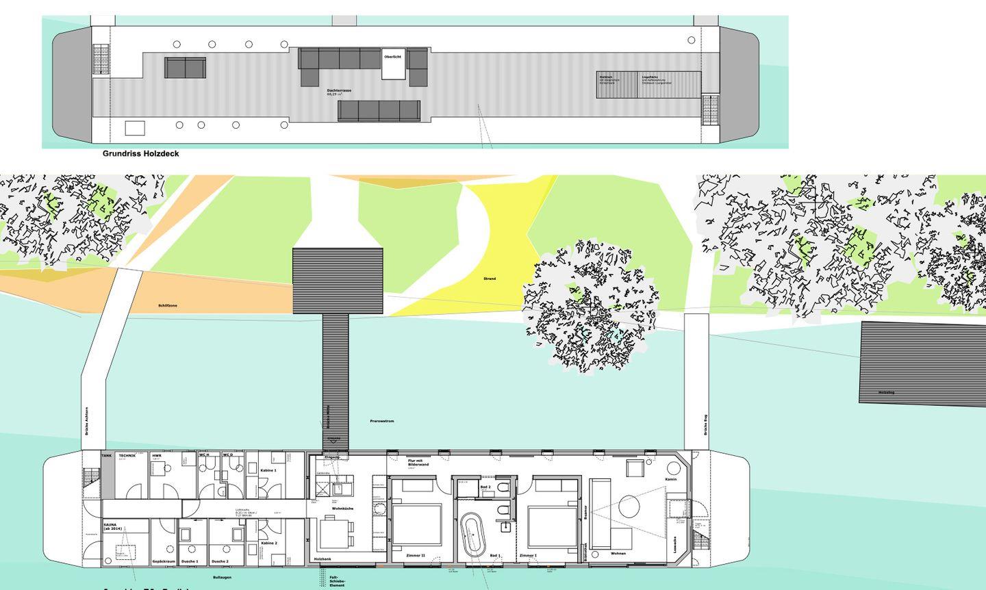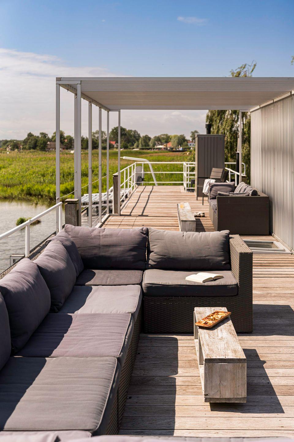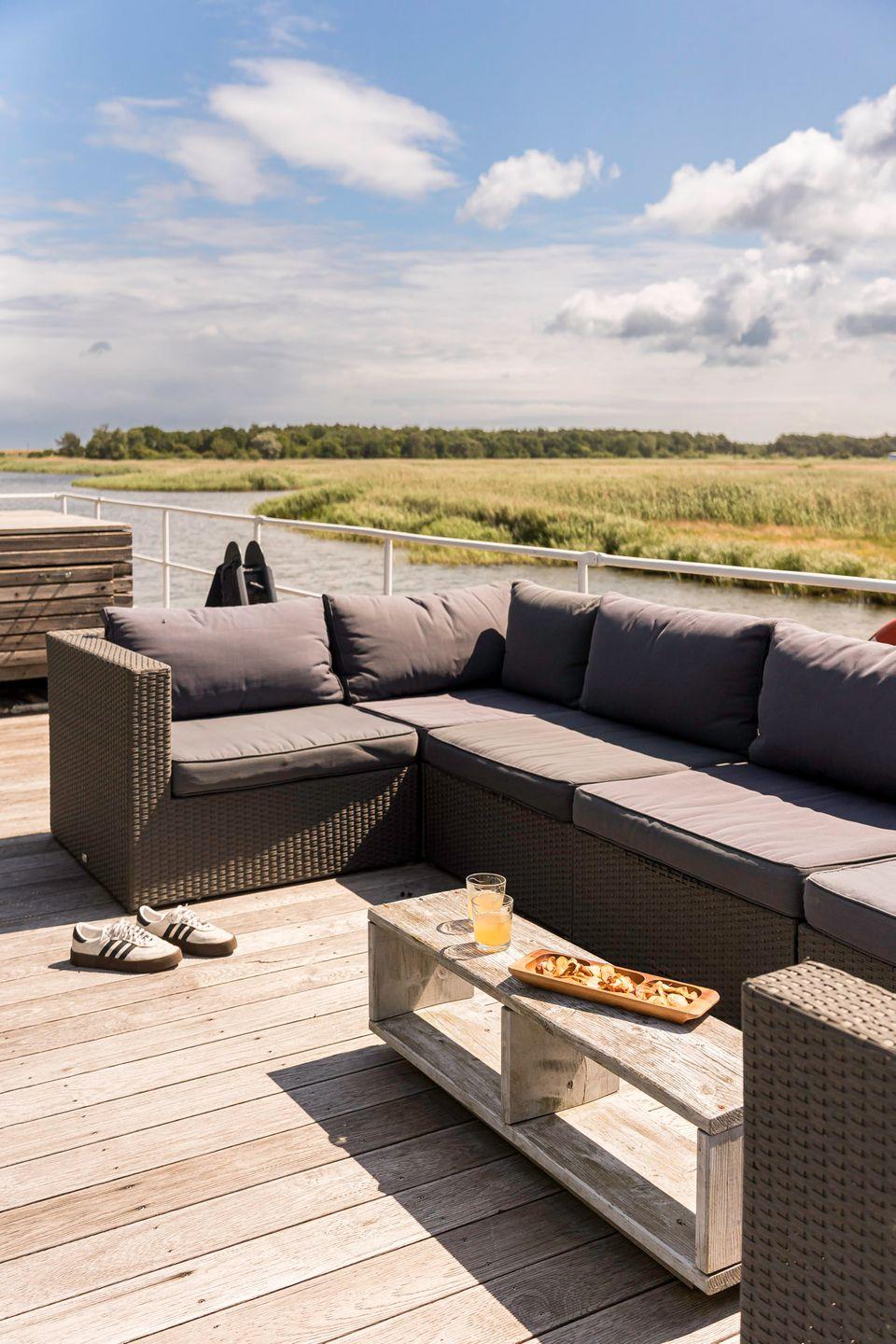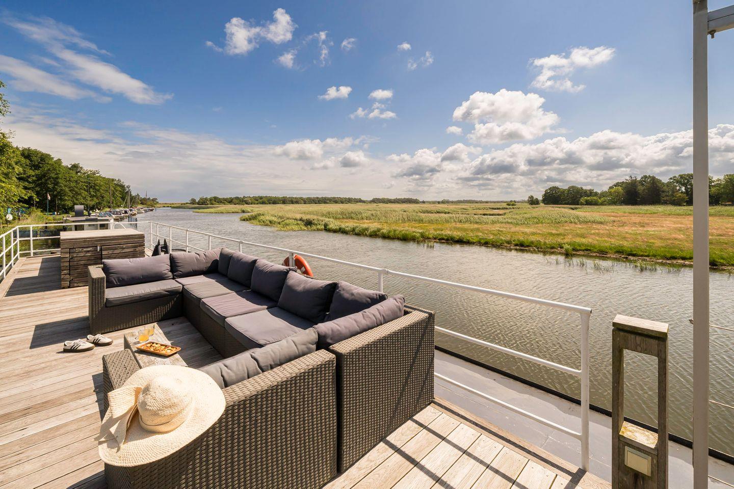 Ein besonderes Highlight ist das großzügige Sonnendeck auf dem Dach des Schiffes. Von hier aus genießen Sie einen unverbauten Blick über die Landschaft des Nationalparks und erleben beeindruckende Sonnenuntergänge über dem Wasser. Ergänzt wird das Erlebnis durch das rund 2.500 Quadratmeter große Wassergrundstück zur Alleinnutzung mit Spiel- und Liegewiese sowie mehreren Sitzplätzen im Grünen.