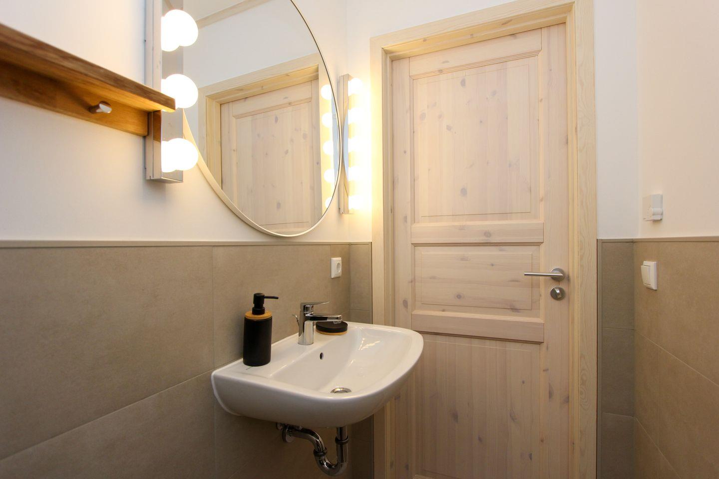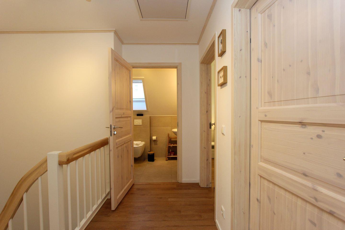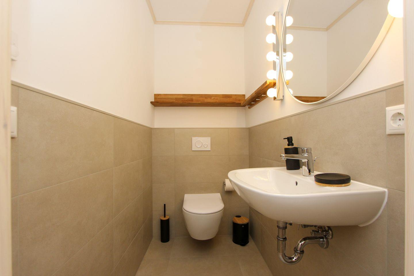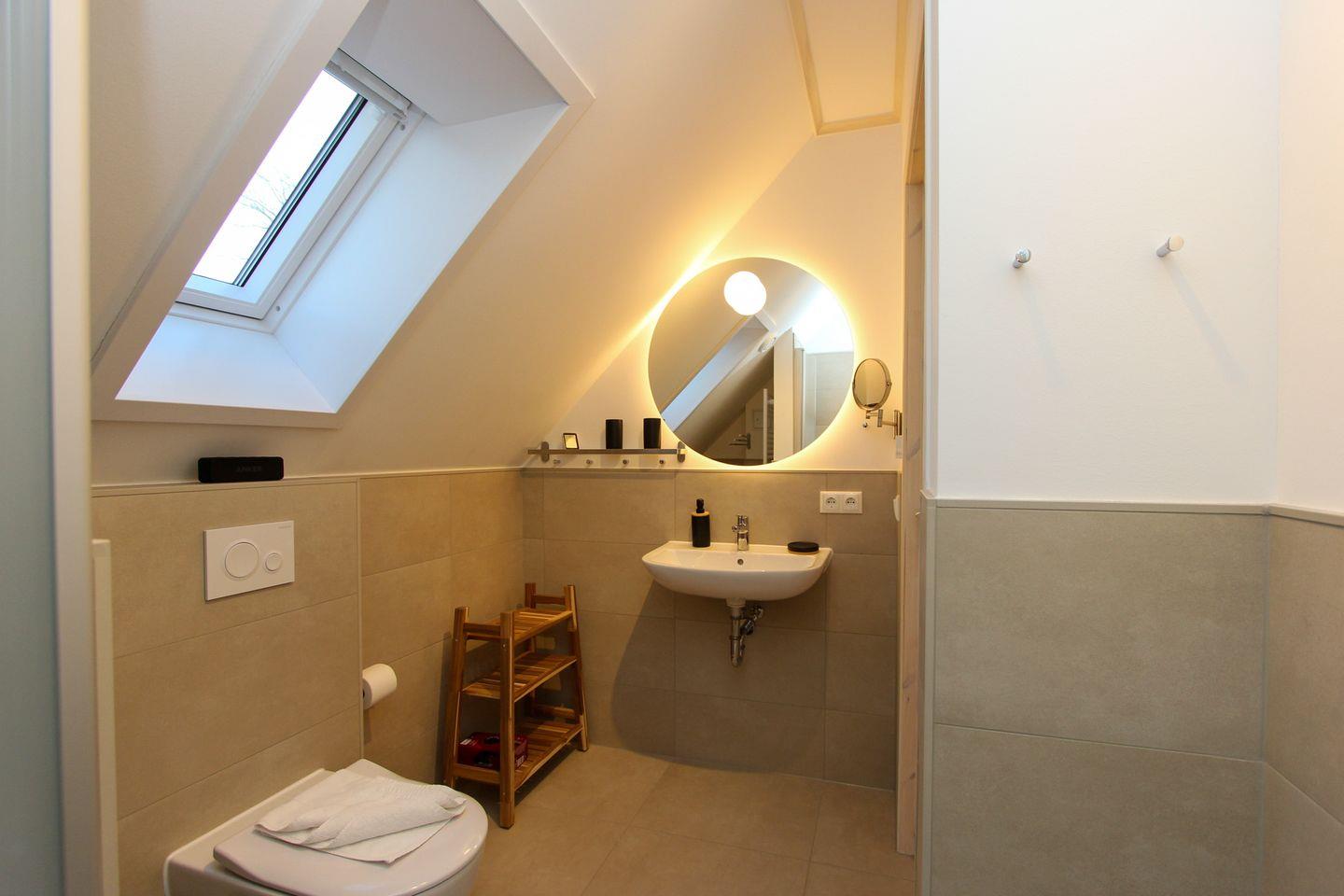 Das Badezimmer ist mit einer bodengleichen Dusche, Spiegel und Fenster ausgestattet und verspricht angenehmen Komfort. Zusätzlich steht Ihnen ein Gäste-WC zur Verfügung. Auch an die praktische Seite wurde gedacht: Eine Waschmaschine, Wäscheständer, Staubsauger und eine Garderobe sind vorhanden. Die Waschmaschine steht Ihnen zur Eigennutzung bereit.