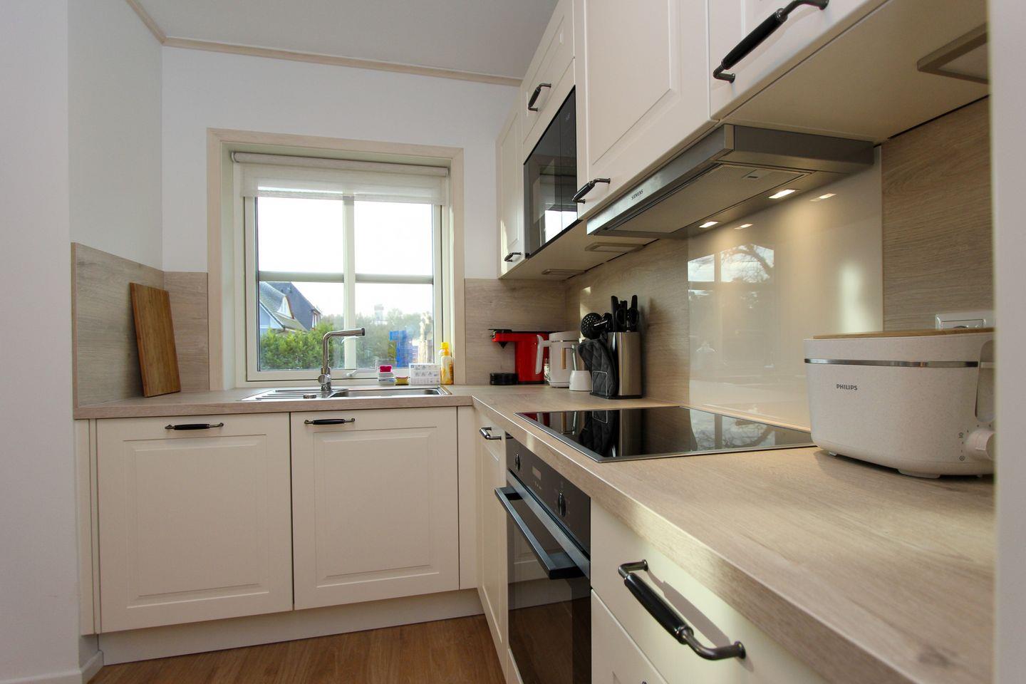 Herzstück des Hauses ist der Wohnbereich mit offener Küche, der nahtlos in einen gemütlichen Essbereich und eine Sofaecke übergeht. Die vollausgestattete Küche verfügt über Backofen, Induktionsherd, Mikrowelle, Kühlschrank, Geschirrspüler, Wasserkocher, Toaster, einer Kombi Pad-Filterkaffeemaschine