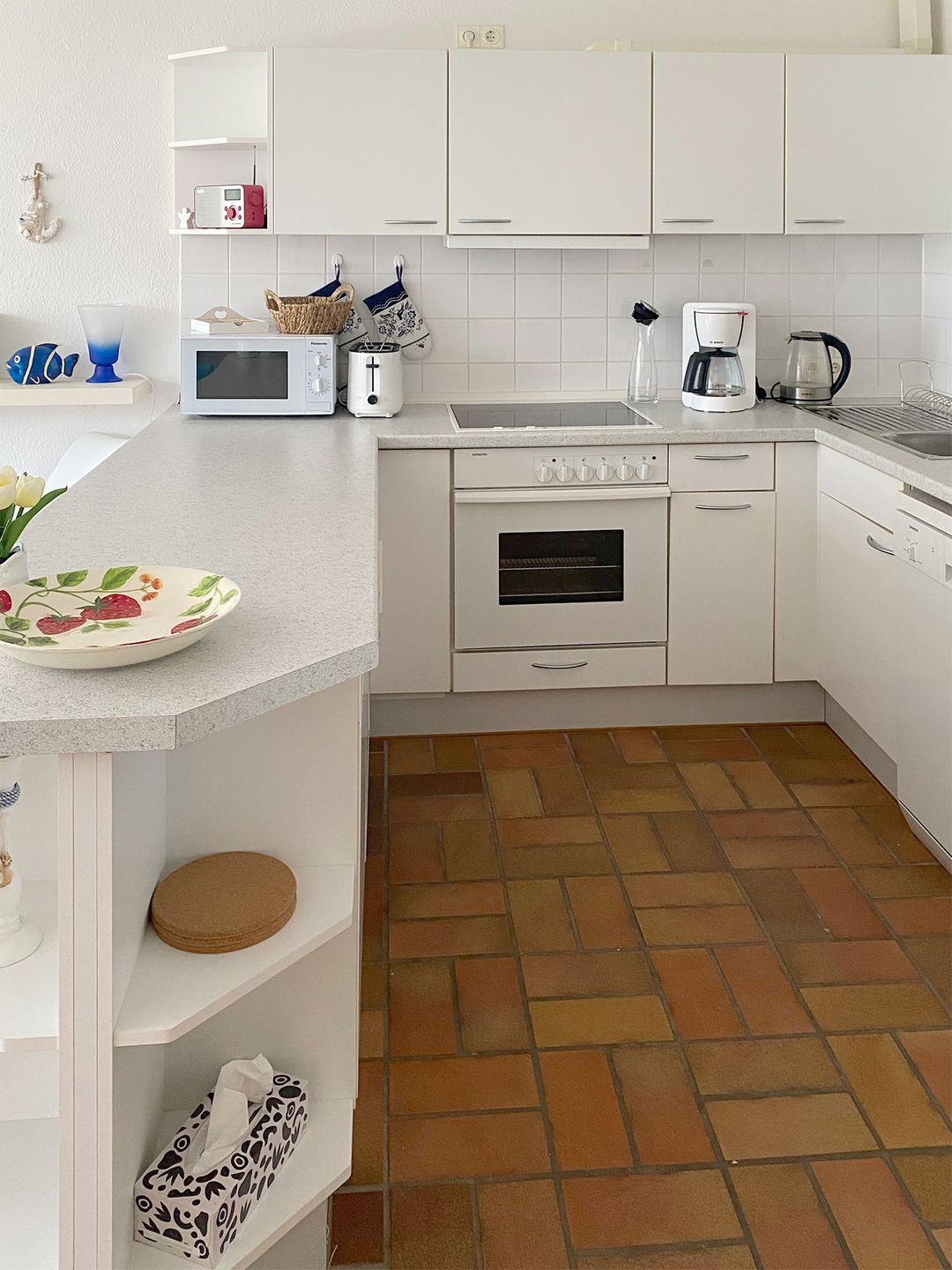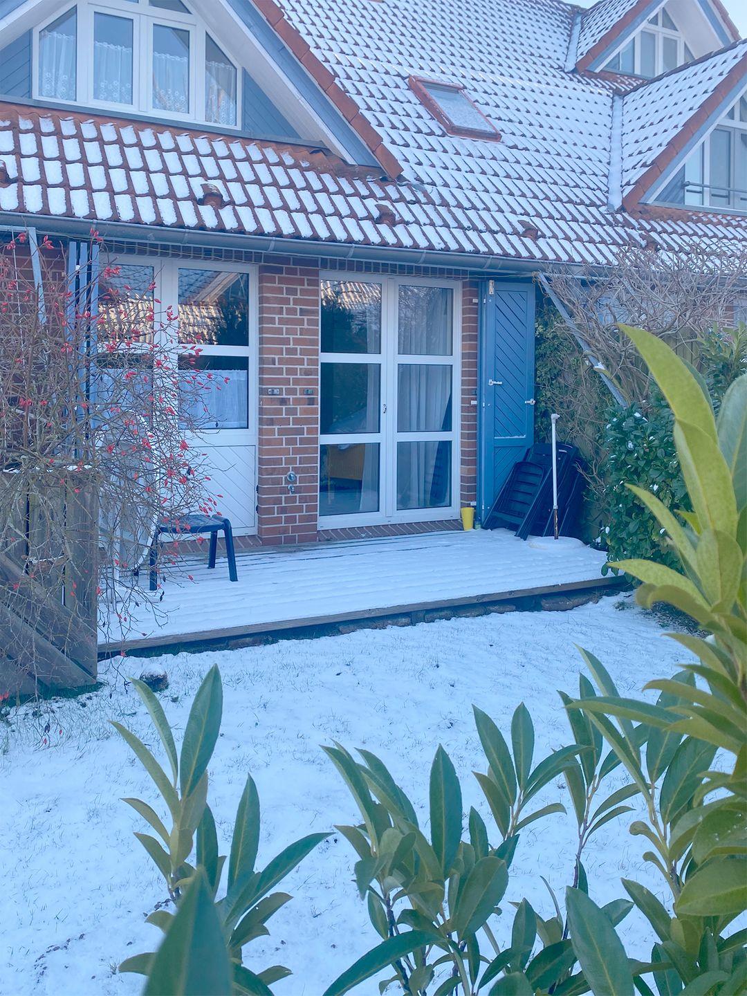 Die gemütliche Ferienwohnung für bis zu 4 Personen befindet sich im Erdgeschoss eines Hauses im Kapitänsgarten und bietet auf ca. 46 m² alles, was für einen erholsamen Aufenthalt nötig ist. Die Unterkunft verfügt über einen behaglichen Wohnbereich mit Esstisch, Sitzgarnitur sowie einem Radio und SAT-TV. Die Einbauküche ist modern ausgestattet mit Backofen, Ceran-Kochfeld, Geschirrspüler, Kühlschrank mit Gefrierfach, Mikrowelle, Kaffeemaschine, Toaster und Wasserkocher. Das Badezimmer ist mit einer Dusche, einem Waschtisch, einem WC und einer Waschmaschine ausgestattet. Es gibt ein separates Schlafzimmer mit einem Doppelbett (160 x 200 cm). Zusätzliche Gäste finden auf dem Schlafsofa (140 x 200 cm) Platz. WLAN und ein Parkplatz auf dem Gelände sind ebenfalls vorhanden. Haustiere sind in dieser Unterkunft gestattet. Bettwäsche und Handtücher sind nicht inklusive.