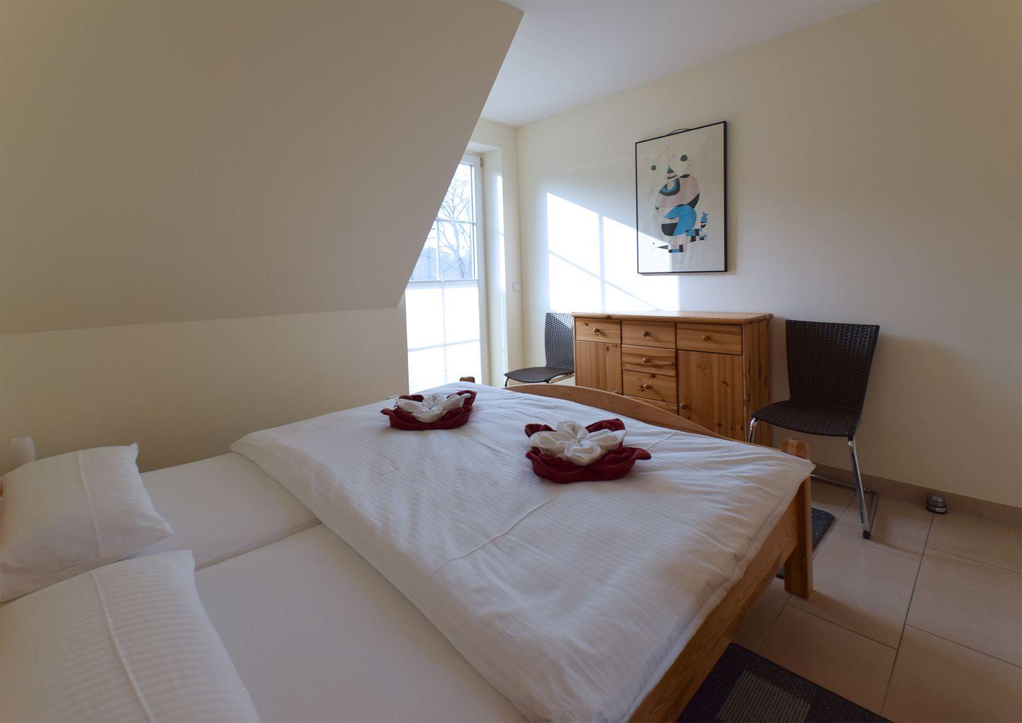 Die Ferienwohnung „Hürsch“ bietet auf großzügigen 74 m² Wohnfläche ein komfortables und ansprechend gestaltetes Zuhause für bis zu vier Personen. Sie befindet sich im ersten Stock und im Dachgeschoss eines Doppelhauses, nur etwa 2,8 km vom Nordstrand und 6 km vom Weststrand entfernt. Durch die Lage direkt am Rand des Nationalparks Vorpommersche Boddenlandschaft profitieren Sie von einer angenehmen Kombination aus ruhiger Atmosphäre und guter Erreichbarkeit zahlreicher Aktivitäten und Einkaufsmöglichkeiten. Ein Supermarkt, Restaurants und weitere Versorgungsangebote befinden sich in der näheren Umgebung, ebenso wie ein Arzt und Bankautomat.