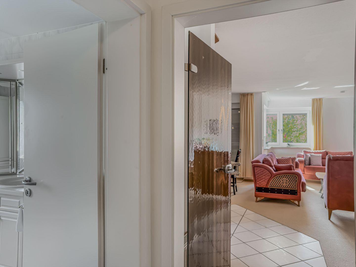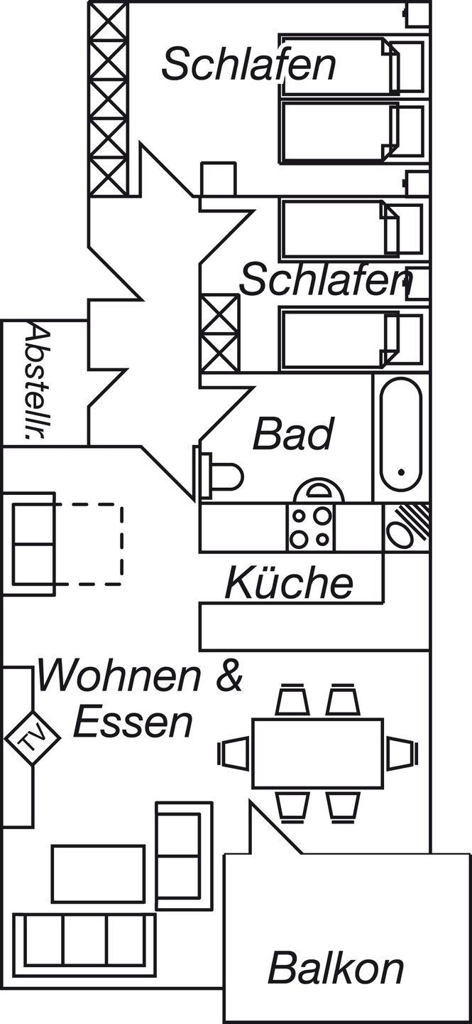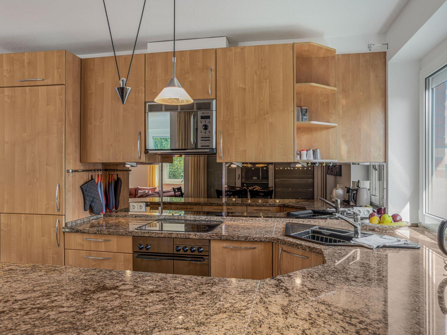 Dieses großzügige 3-Zimmer-Apartment bietet auf ca. 85 m² alles für einen komfortablen und entspannten Urlaub. Es befindet sich im 1. Obergeschoss und verfügt über ein modernes Vollbad mit WC. Zwei Schlafzimmer – eines mit Doppelbett und eines mit Einzelbetten – bieten Platz für bis zu 6 Personen. Die hochwertige Einbauküche ist mit einem 4-Platten-Ceranfeld, Backofen, Geschirrspüler und Mikrowelle ausgestattet und lässt keine Wünsche offen. Das Wohnzimmer lädt mit einer gemütlichen Schlafcouch, TV und Stereoanlage zum Entspannen ein. WLAN steht selbstverständlich zur Verfügung. Genießen Sie die frische Luft auf dem Balkon und die ruhige Lage des Apartments, das direkt an ein Naturschutzgebiet grenzt. Ein PKW-Garagenstellplatz ist ebenfalls vorhanden. Ideal für Familien oder Gruppen, die Ruhe und Natur in unmittelbarer Nähe zum Priwall suchen.