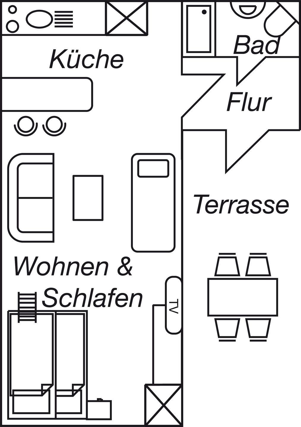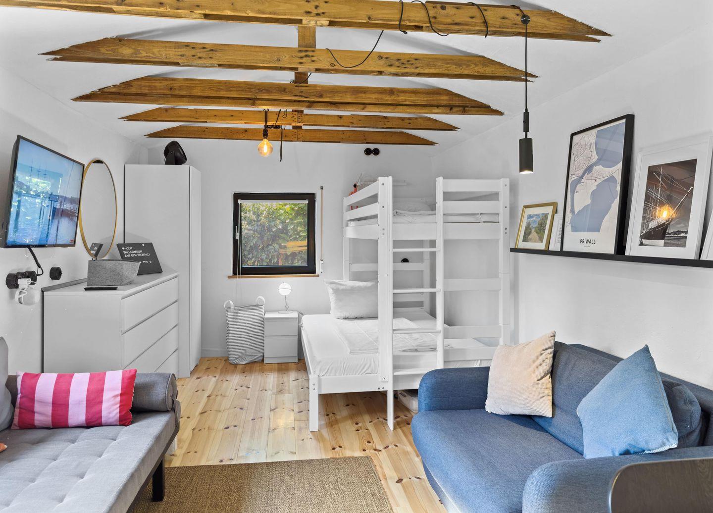 Dieses gemütliche 1-Zimmer-Ferienhaus im Erdgeschoss bietet auf ca. 30 m² alles, was Sie für einen erholsamen Aufenthalt benötigen. Der kombinierte Wohn- und Schlafraum ist mit einem Etagenbett (1,40 m unten, 0,90 m oben) ausgestattet und sorgt für Komfort. Die gut ausgestattete Einbauküche mit 2-Platten-Ceranfeld, Backofen und separatem Essplatz lädt zum Kochen ein. Vom Wohnbereich gelangen Sie auf die möblierte Terrasse mit Garten, ideal zum Entspannen. In ruhiger Lage, mit Einkaufsmöglichkeiten und dem Bäcker in der Nähe, erreichen Sie den Strand bequem zu Fuß.