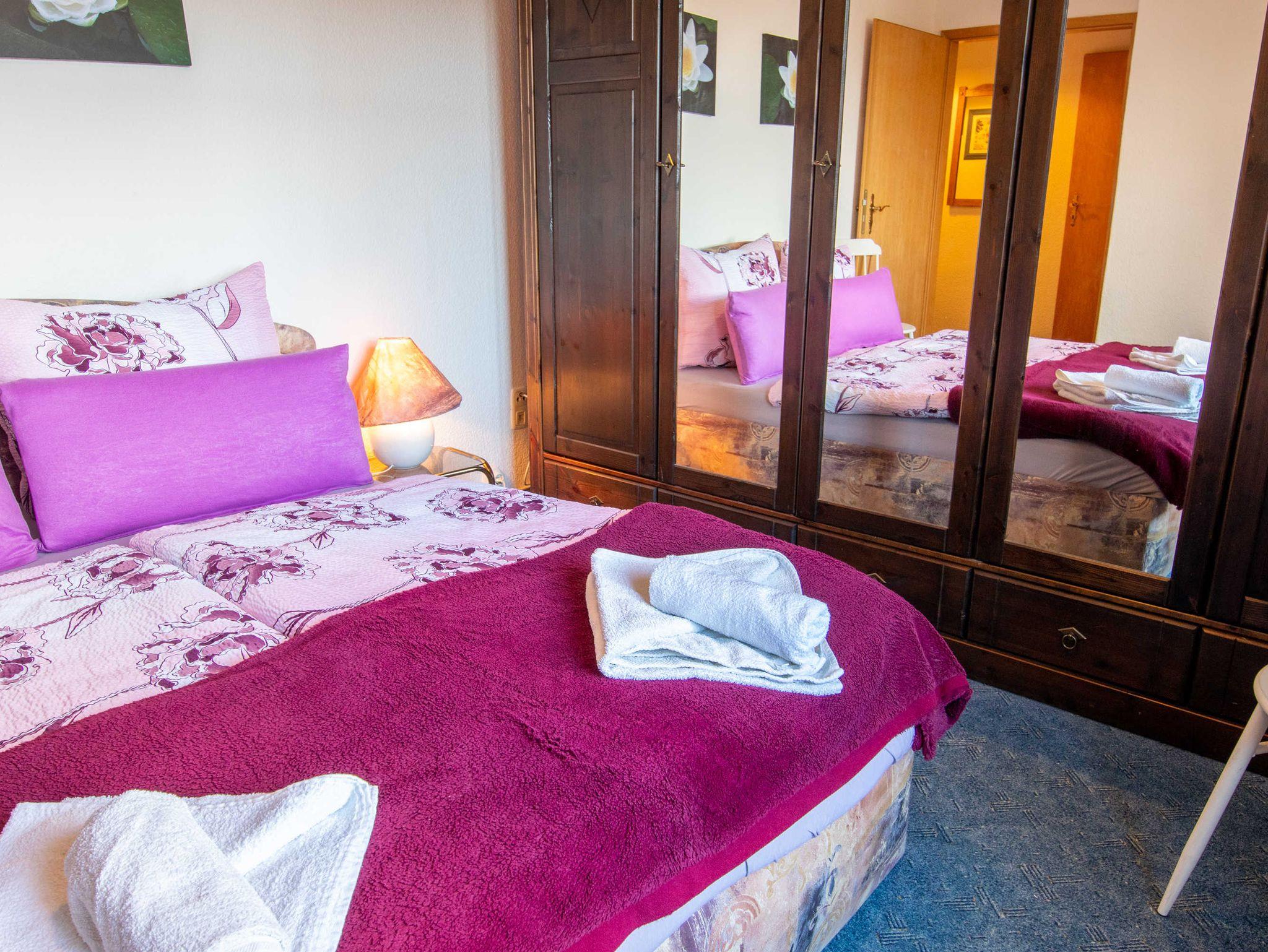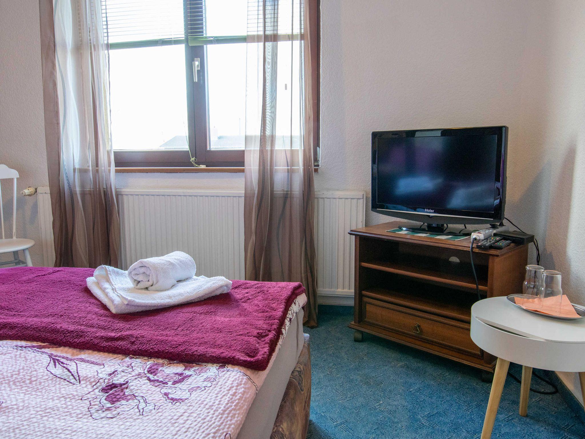 Das Doppelzimmer ist eingerichtet mit 2 Einzelbetten (90x200), außer in Zimmer 19, dort befindet sich ein Doppelbett (180x200), einem TV (teilweise Flachbild-TV), einer Sitzgelegenheit, Kleiderschrank, einem Bad mit Fenster, Dusche und WC sowie einem kleinen Vorflur.
