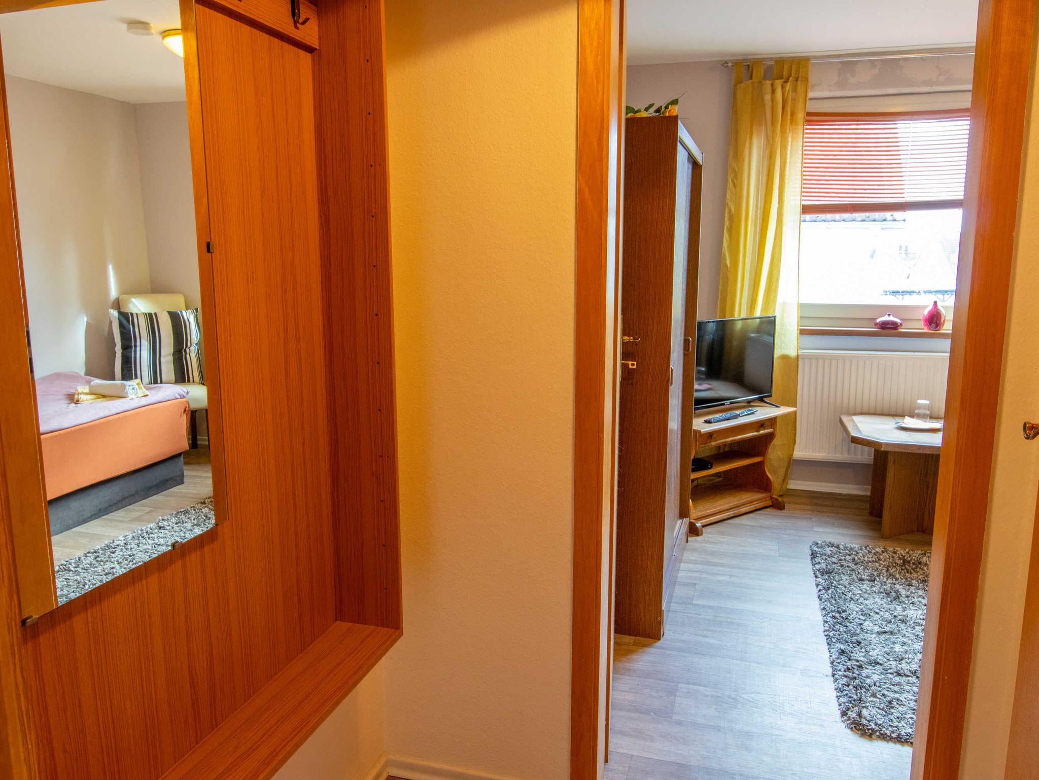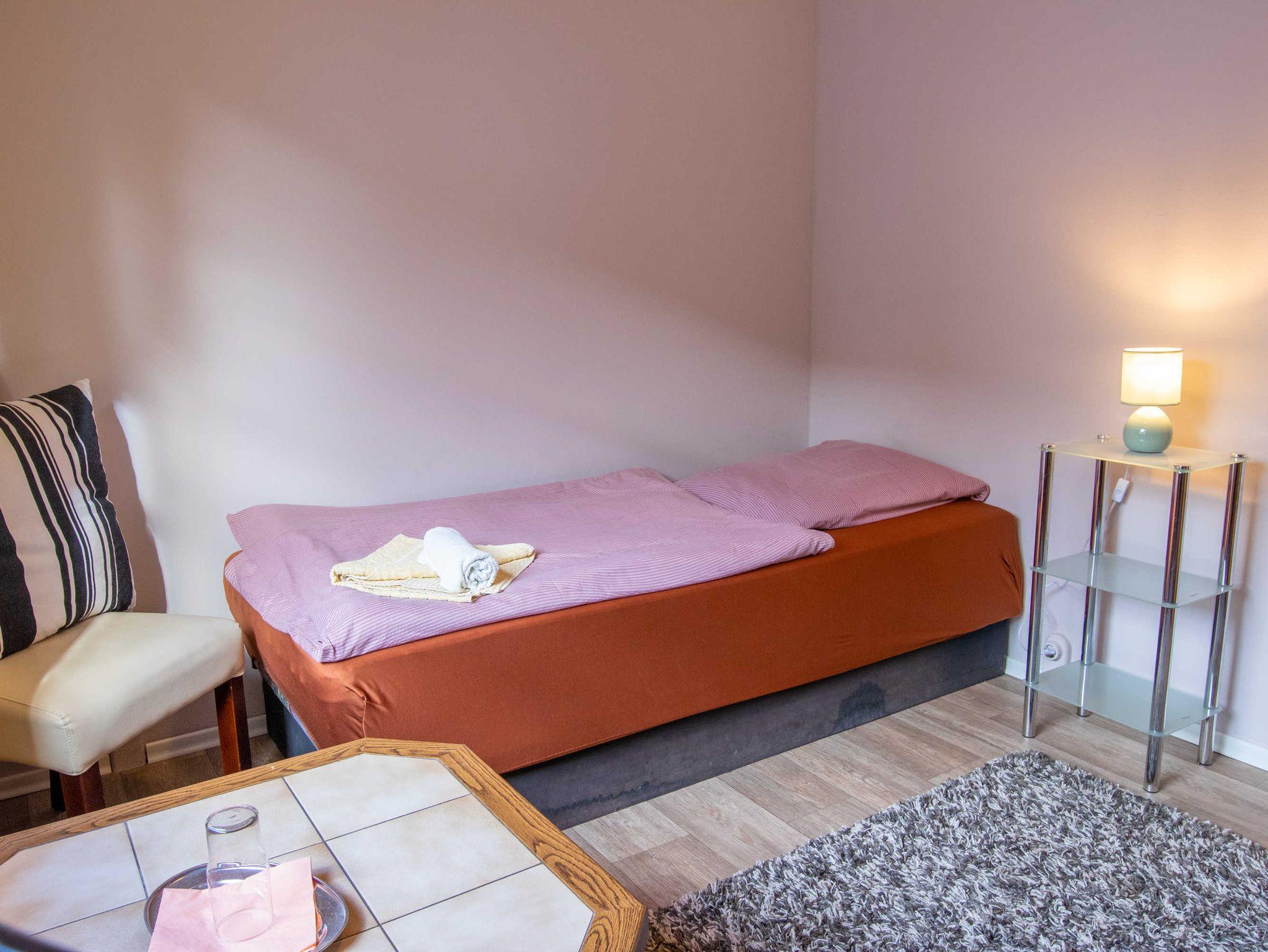 Gemütliches Einzelzimmer in Pension Zur Kurve nahe Stralsund mit eigenem Bad und WLAN.