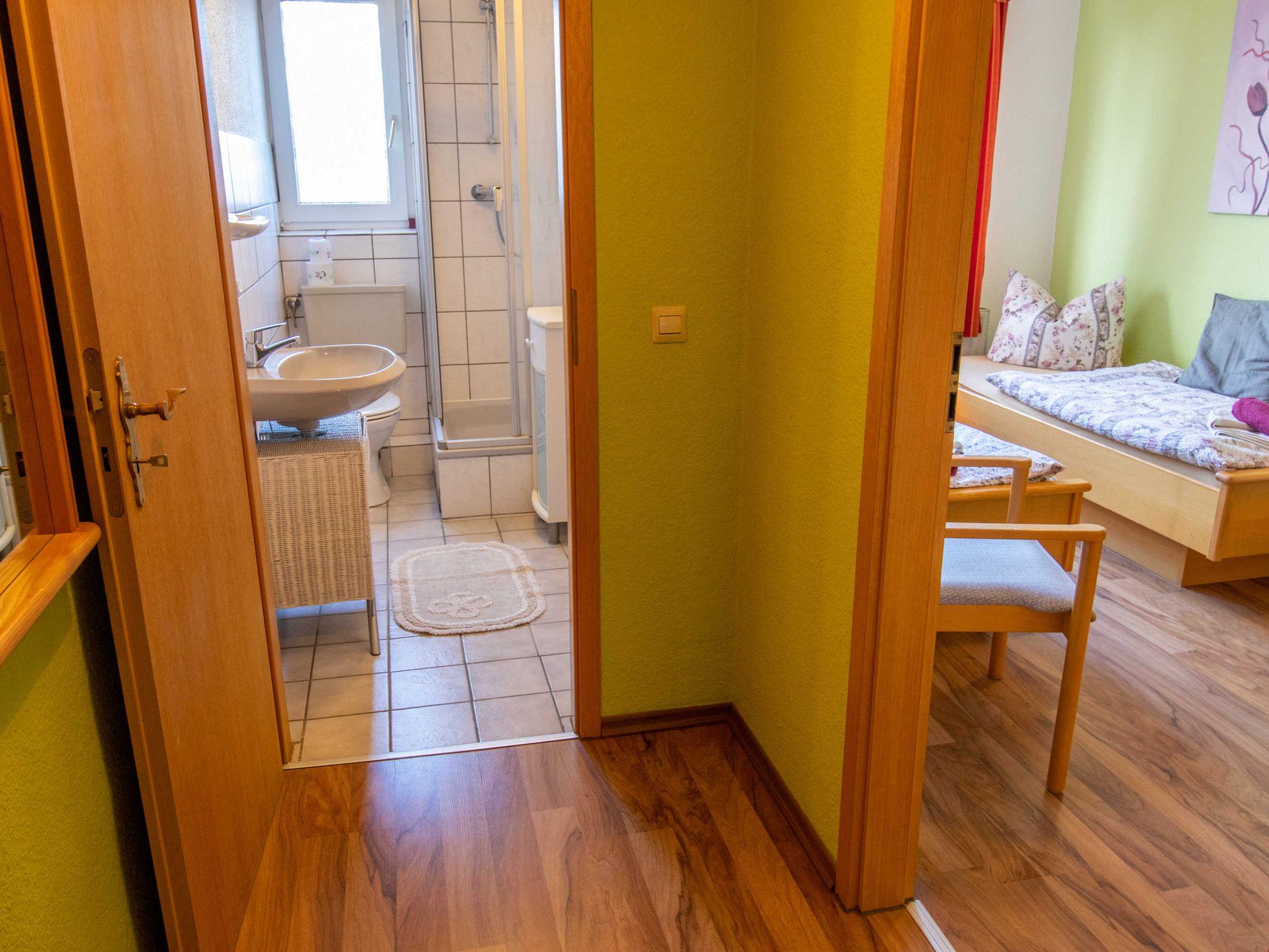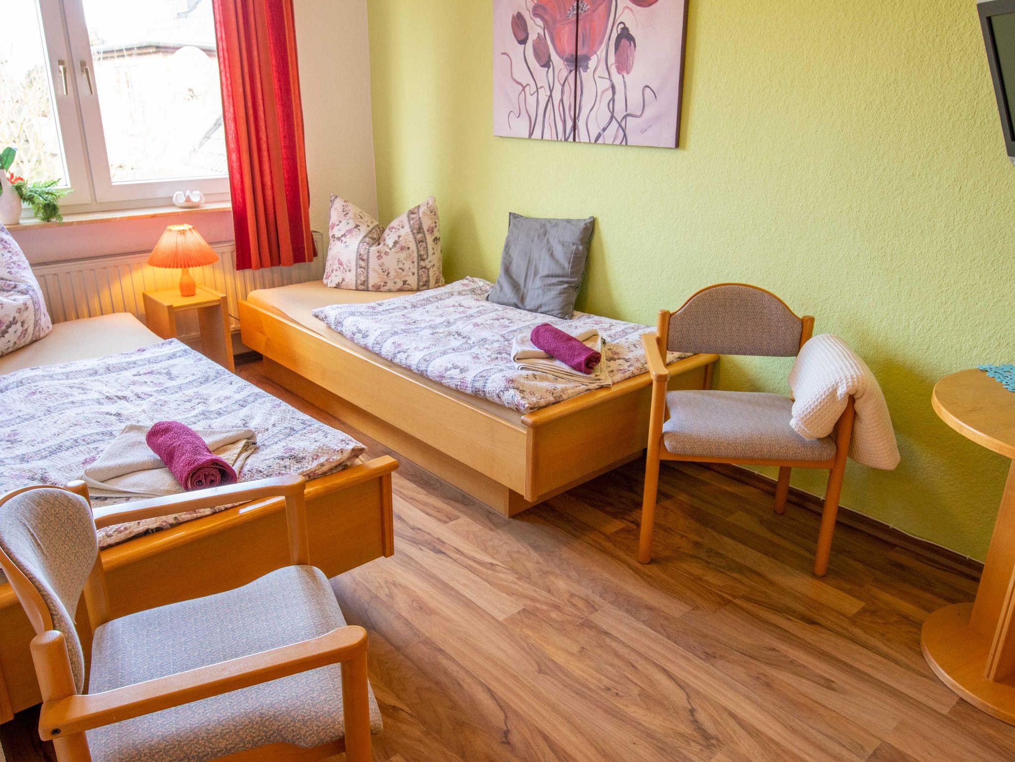 Das Doppelzimmer ist eingerichtet mit 2 Einzelbetten (90x200), außer in Zimmer 19, dort befindet sich ein Doppelbett (180x200), einem TV (teilweise Flachbild-TV), einer Sitzgelegenheit, Kleiderschrank, einem Bad mit Fenster, Dusche und WC sowie einem kleinen Vorflur.