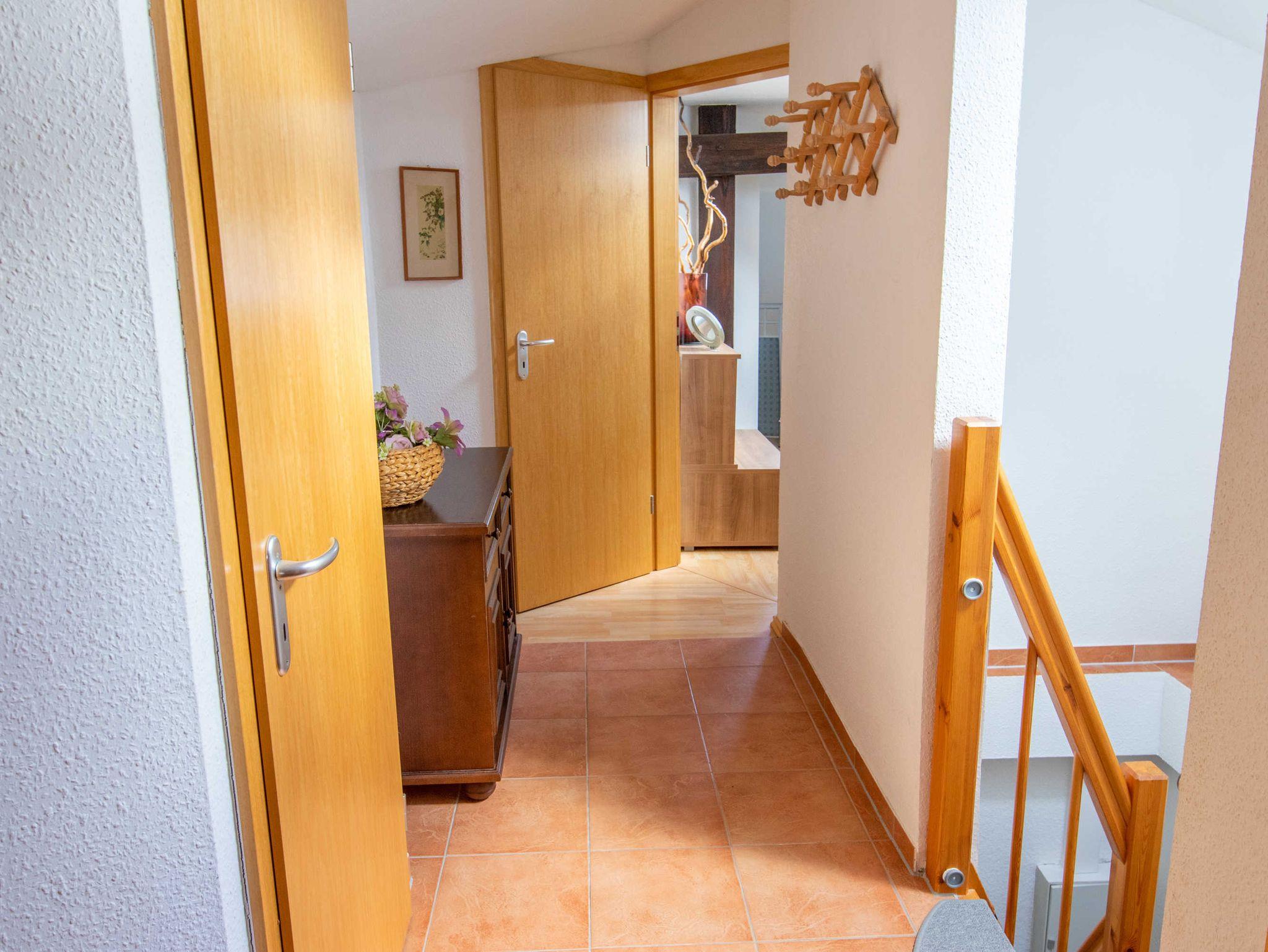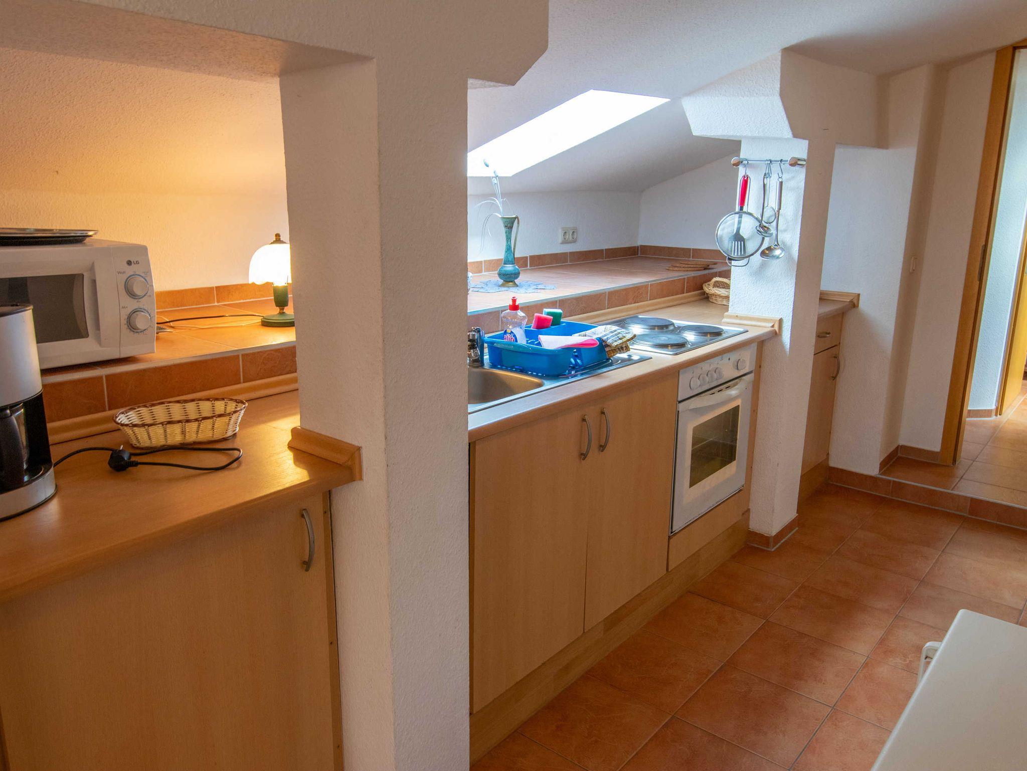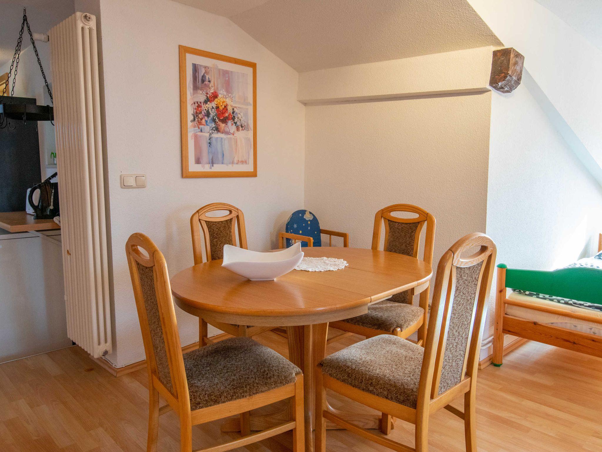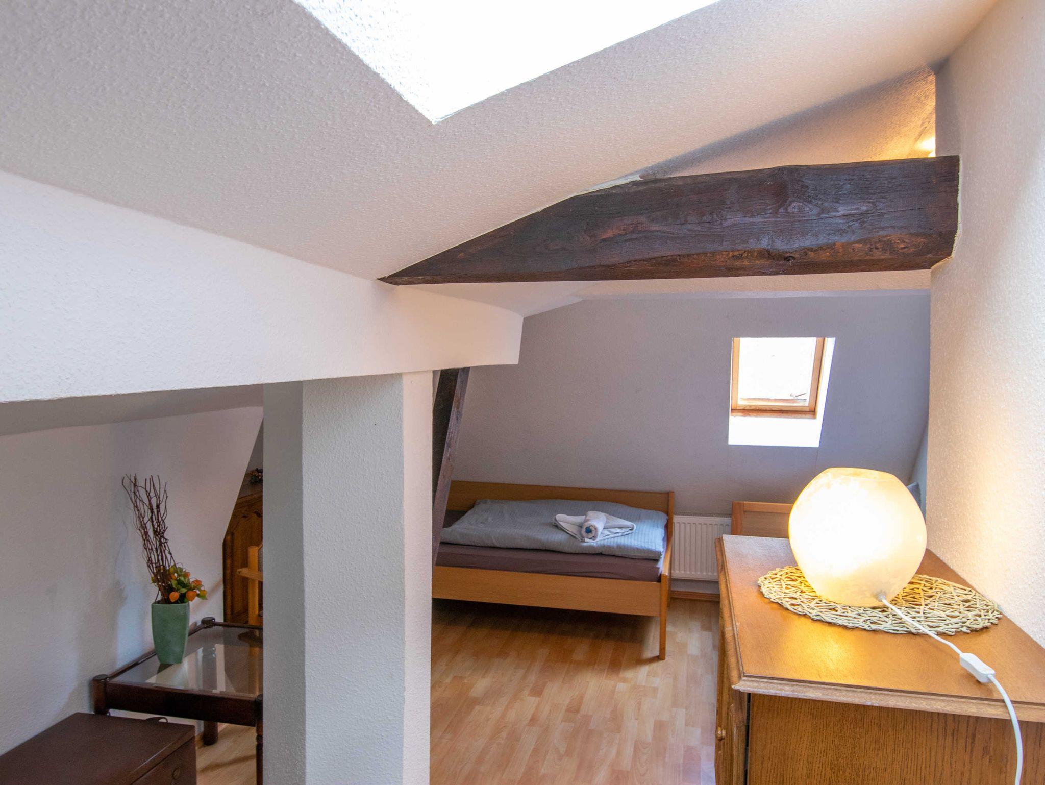 Die 65m² große 3-Raumwohnung für bis zu 5 Personen befindet sich im Dachgeschoss der Pension und ist über 2 Treppen zu erreichen.