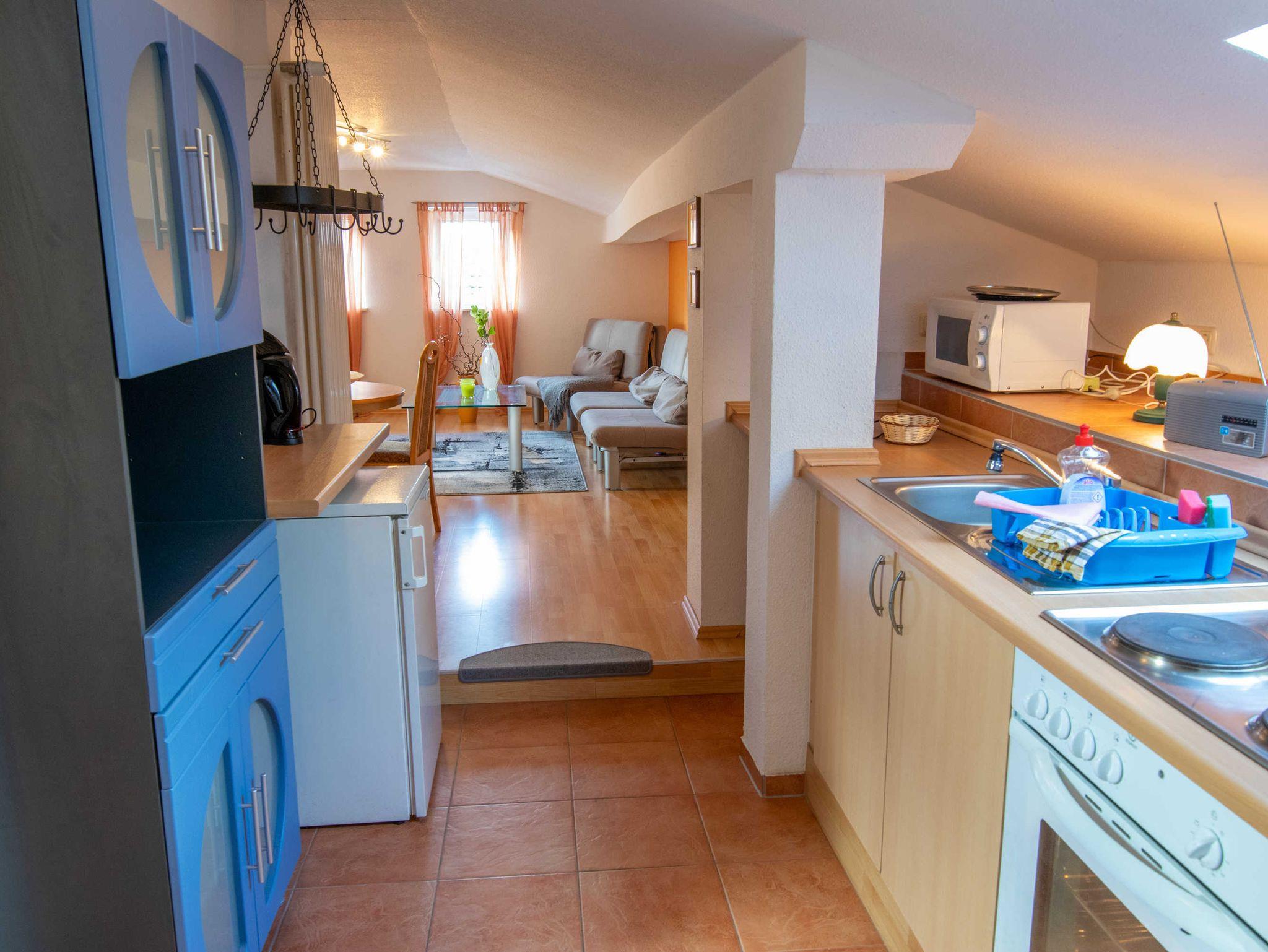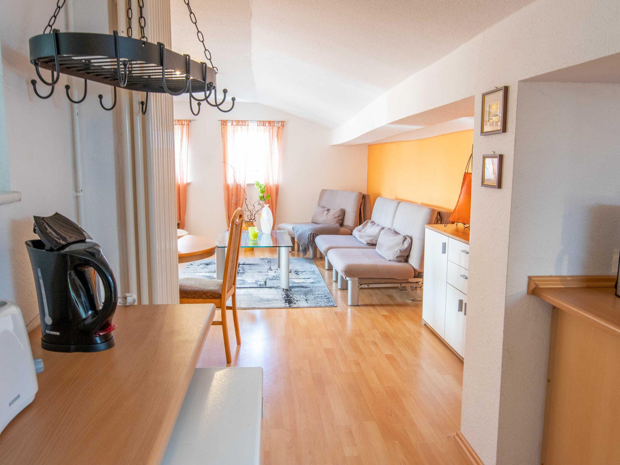Gemütliche Ferienwohnung in Prohn nahe Stralsund mit offener Küche und WLAN, ideal für Familien und Radfahrer.
